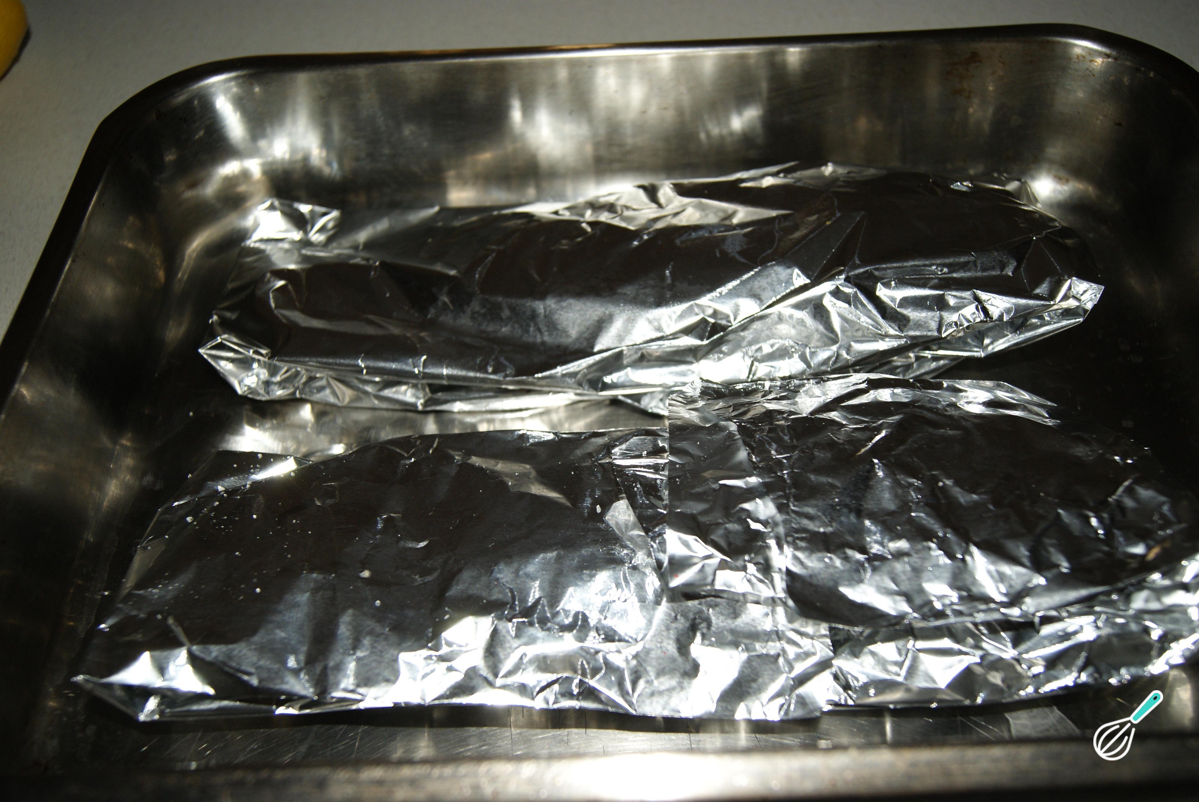 Dica: Não faça furos na folha de alumínio, o peixe cozinhará nos próximos sucos e com o calor que se forme dentro do alumínio.