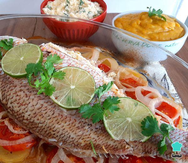 Ficou curioso para ver como preparar essa receita de peixe assado? Então, acompanhe aqui no TudoReceitas as fotos com o passo a passo dessa deliciosa receita de peixe inteiro assado no forno com farofa.