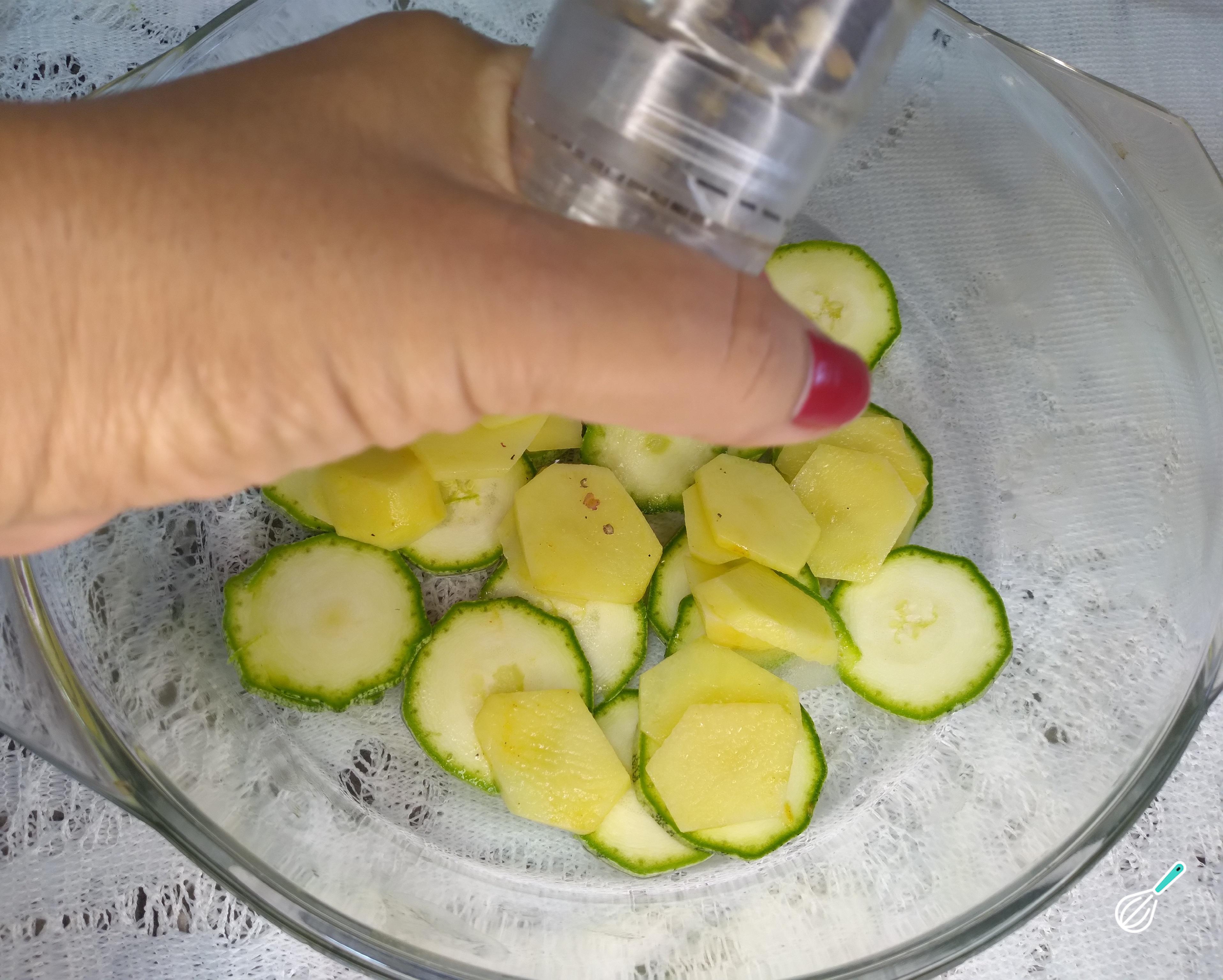 Dica: É importante colocar sal e pimenta sobre os legumes, assim ficarão temperados.