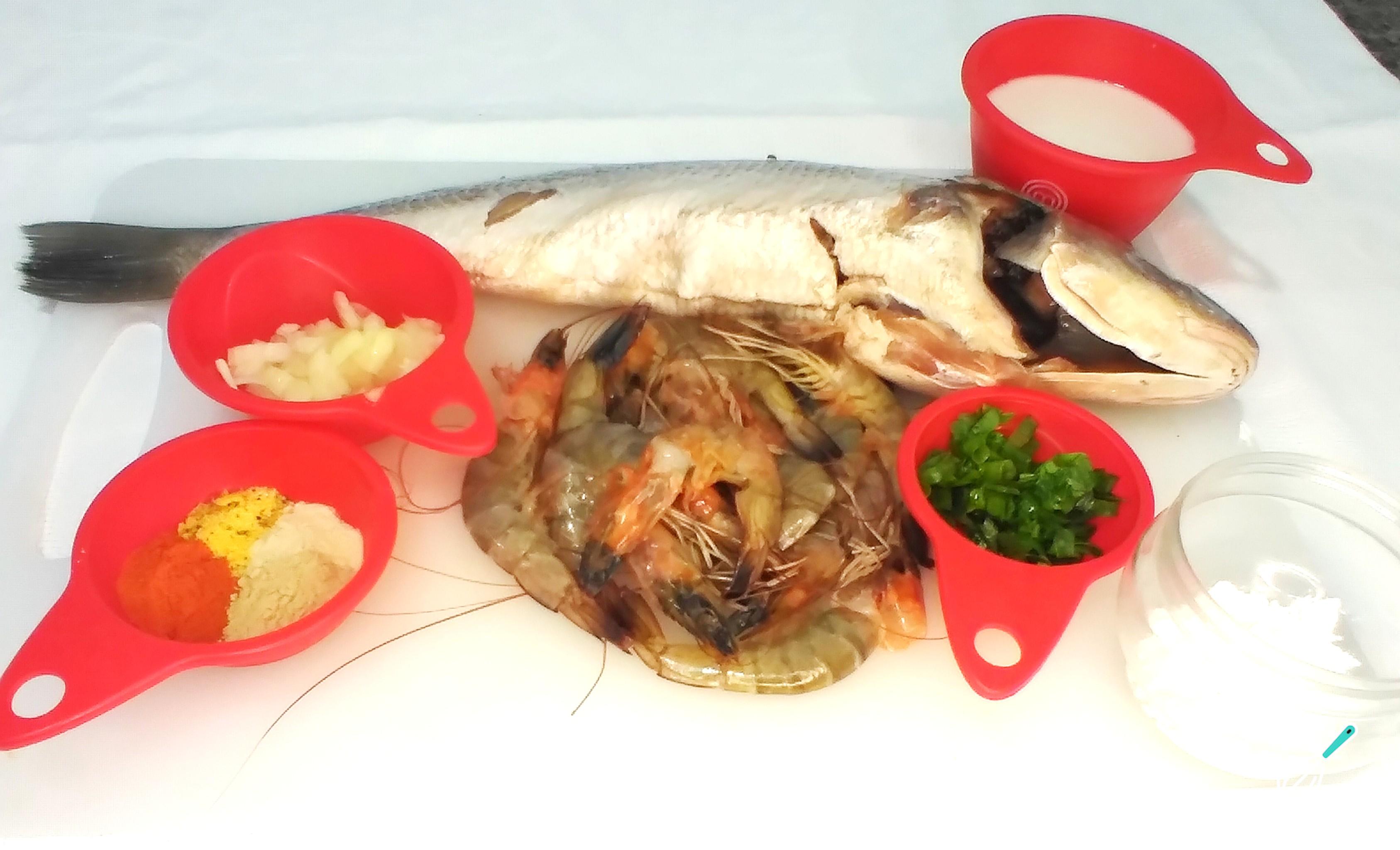 Comece separando os ingredientes. Prefira comprar o peixe já limpo. Separe e limpe os camarões, corte a cebola branca em cubos pequenos. Corte a cebolinha verde e a salsinha em pequenos pedaços. Separe os temperos de sua preferência. Meça o leite e o amido.