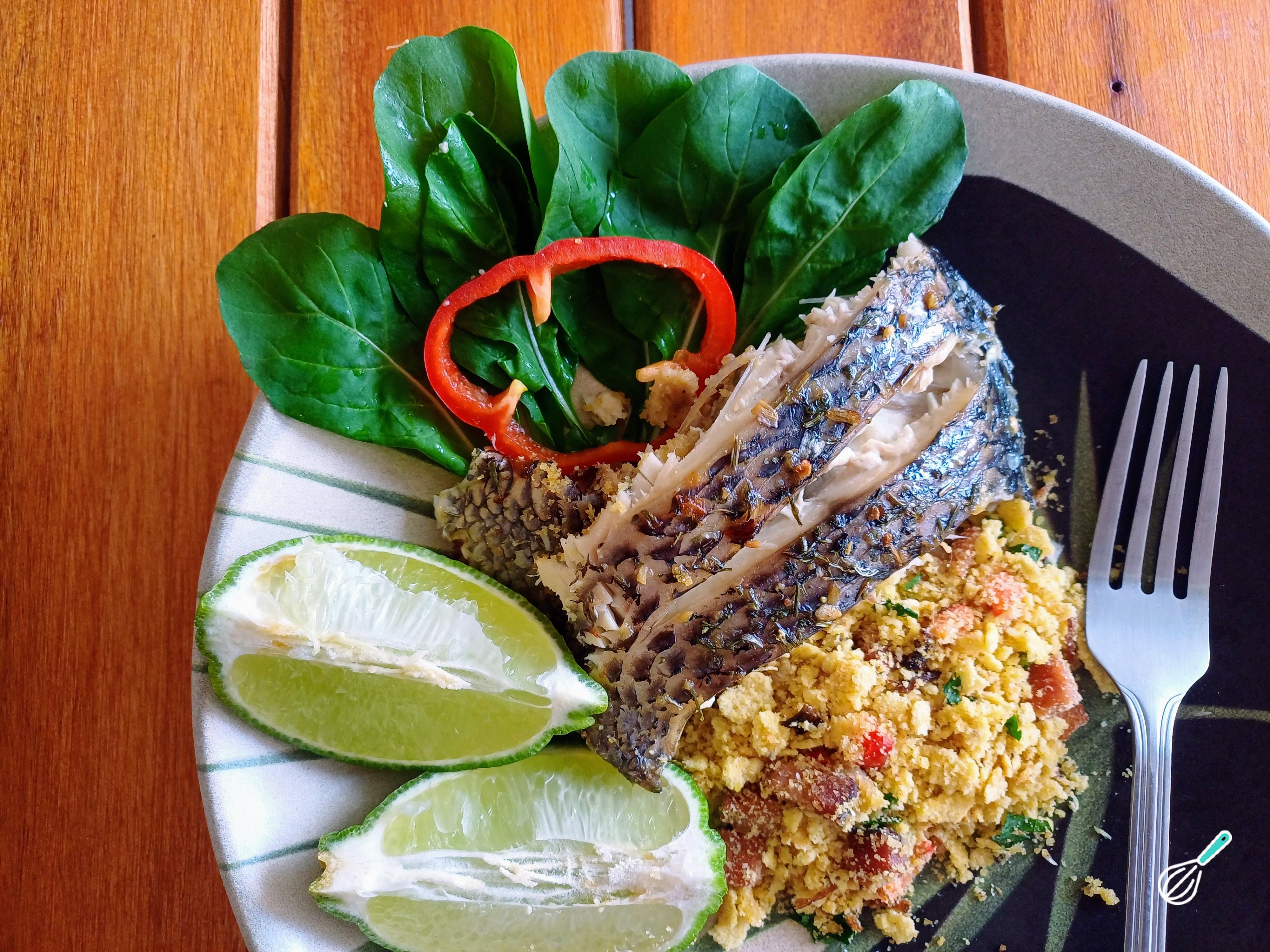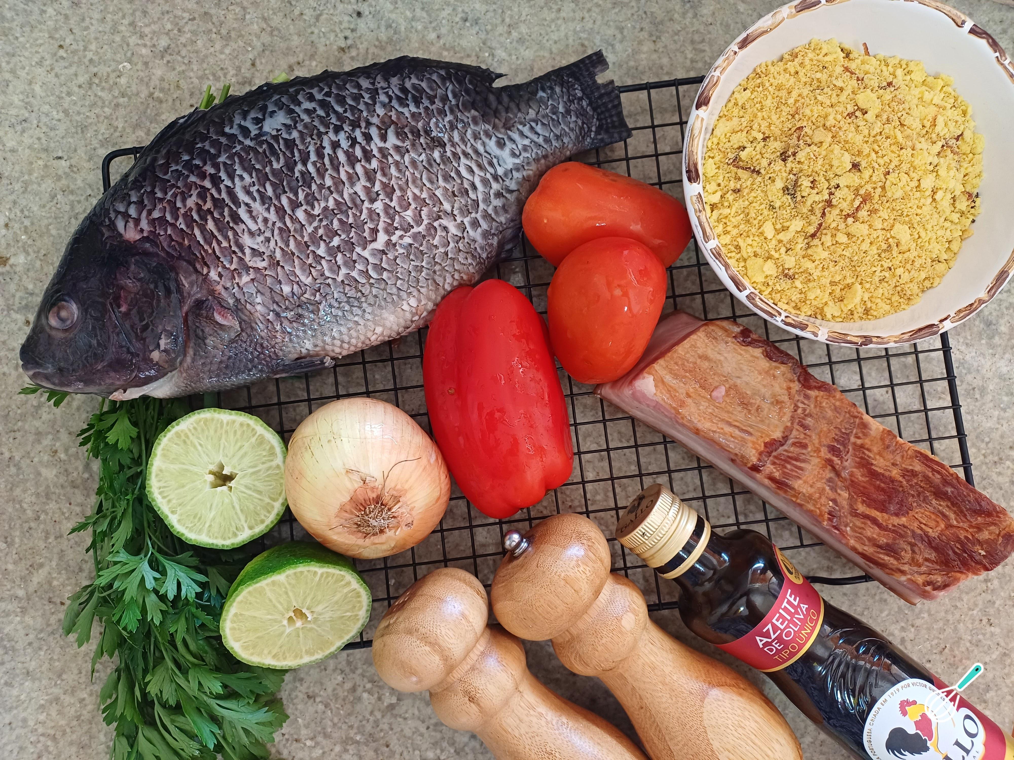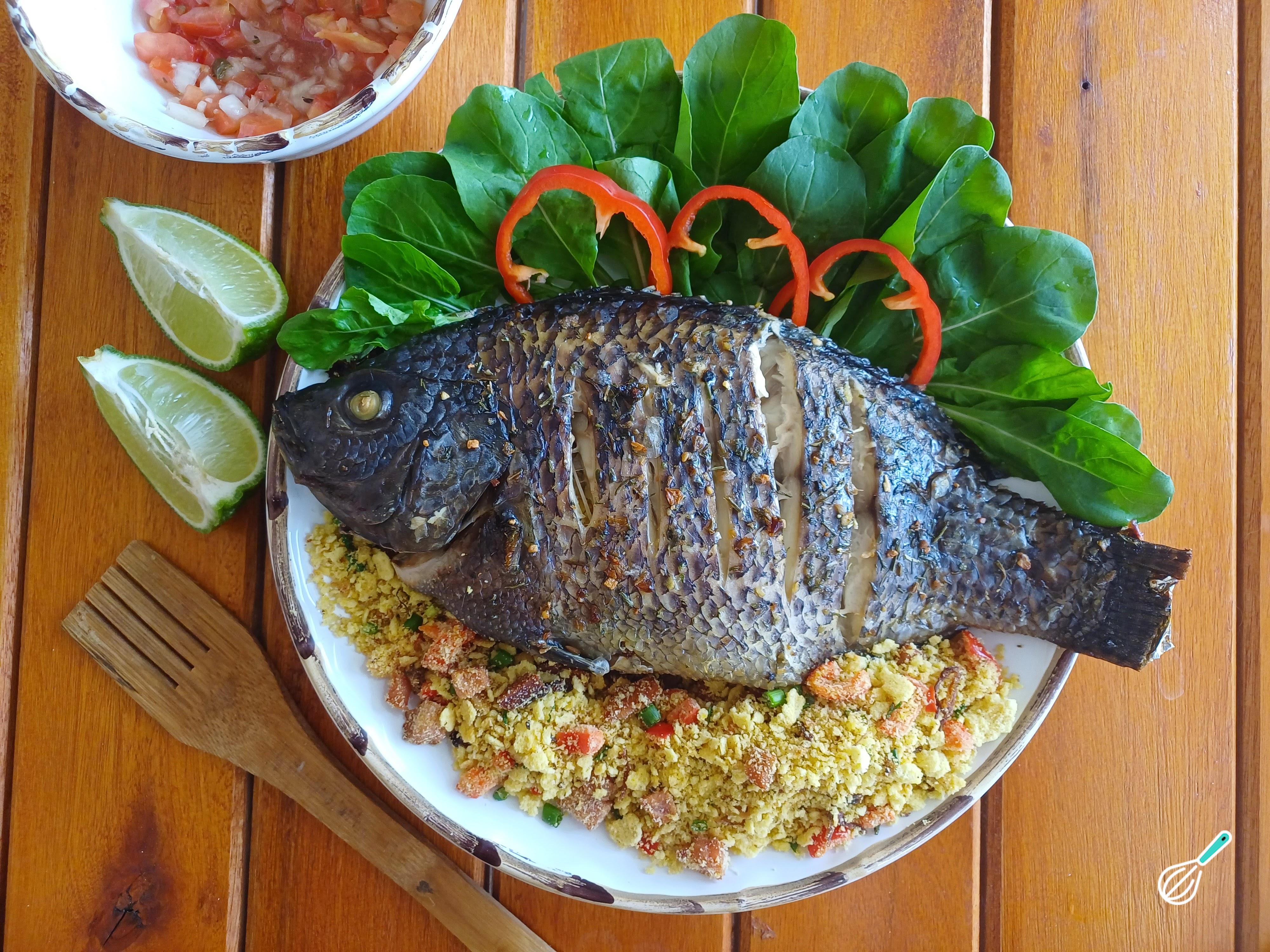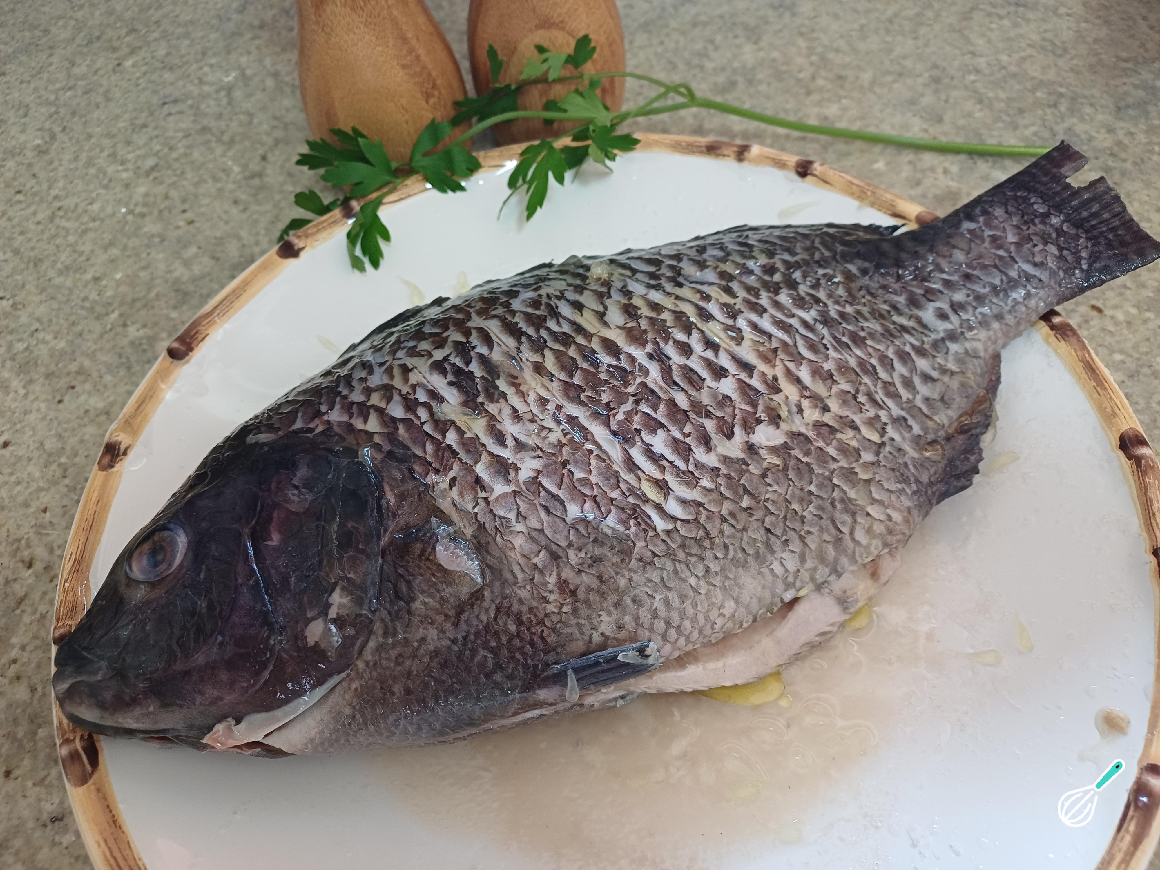 Dica: aqui estamos usando a tilápia inteira, fresca e limpa, sem escamas e vísceras. Você poderá usar o peixe que preferir, como o robalo, pescada ou dourado.