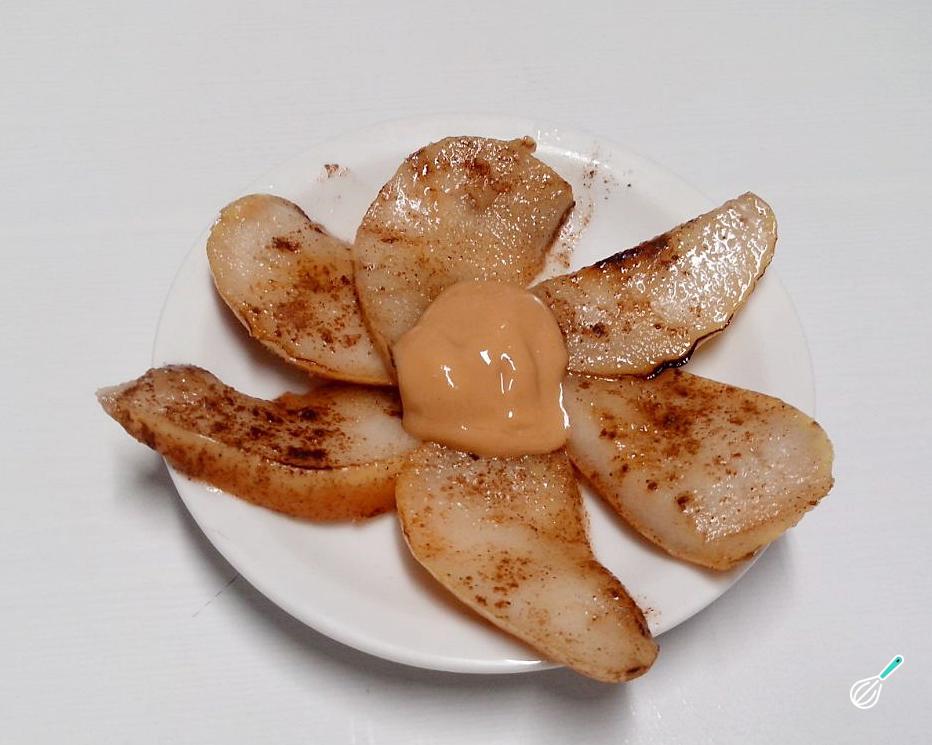 Por último finalize esta receita de pera caramelizada fit com pasta de amendoim. Prove e comprove que é uma delícia!