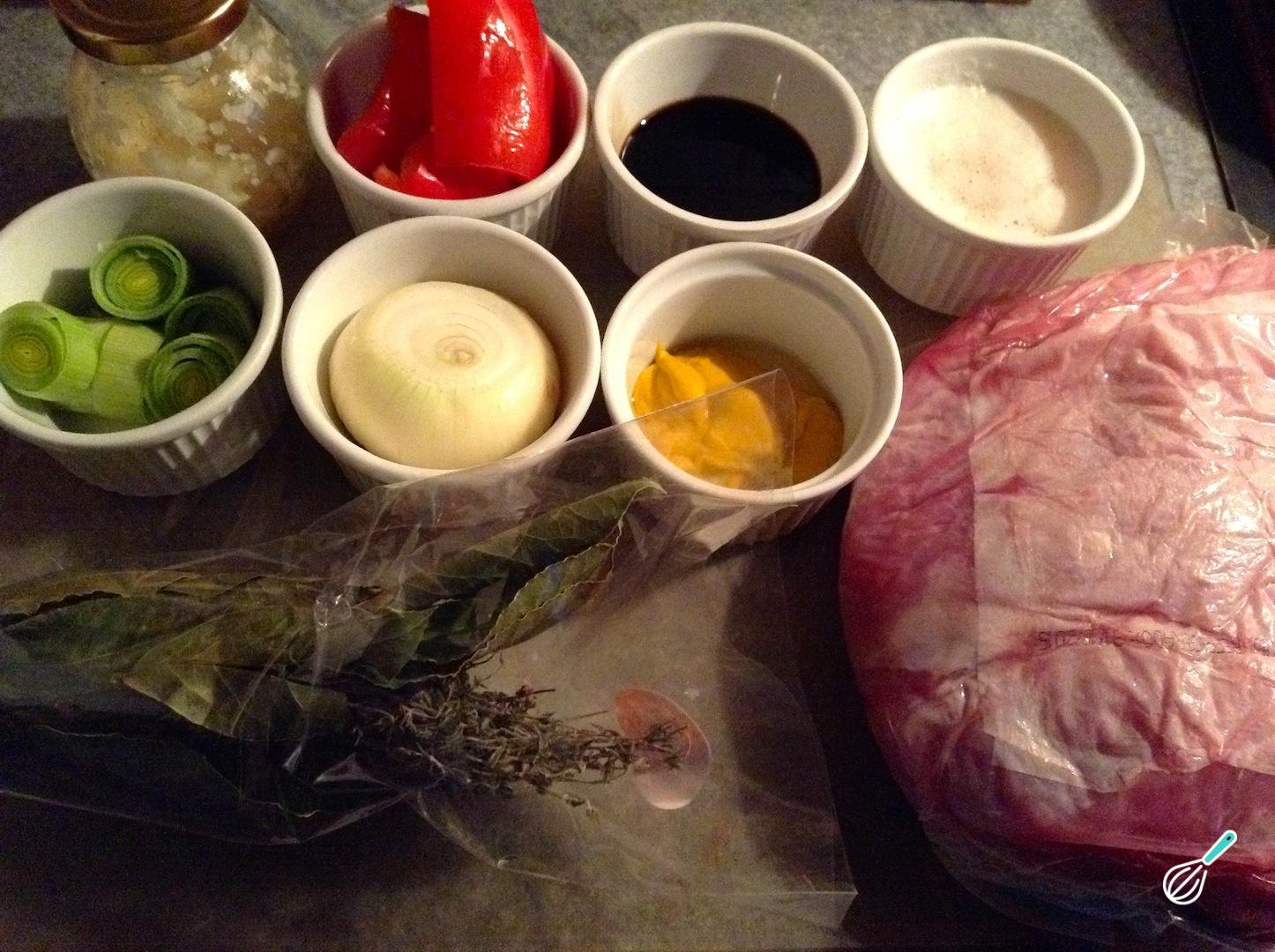 Para fazer essa receita de pernil de Natal assado comece por reunir todos os ingredientes necessários. Se seu pernil for maior ou menor, terá de ajustar um pouco a quantidade de ingredientes.