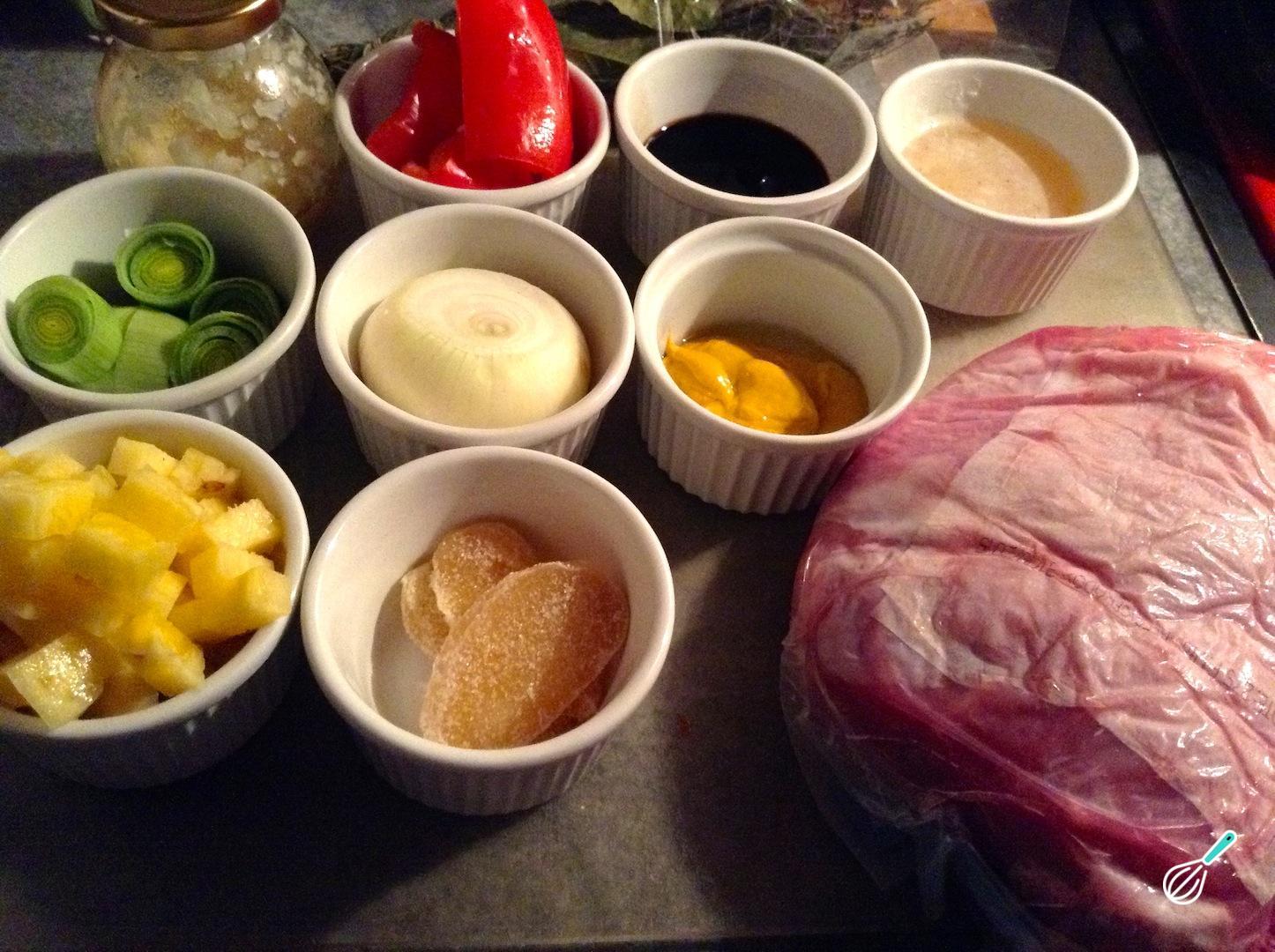 Finalmente sirva o pernil de porco com o molho agridoce preparado anteriormente e acompanhe com, por exemplo, arroz de amêndoa. Bom apetite!