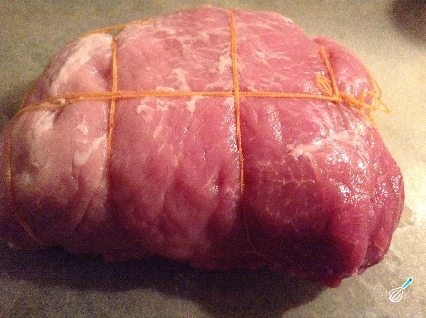 Em seguida prepare a carne para marinar, começando por cortar o excesso de gordura do pernil. Depois amarre o pernil com fio barbante, para que mantenha a sua forma durante toda a preparação desta receita natalina.