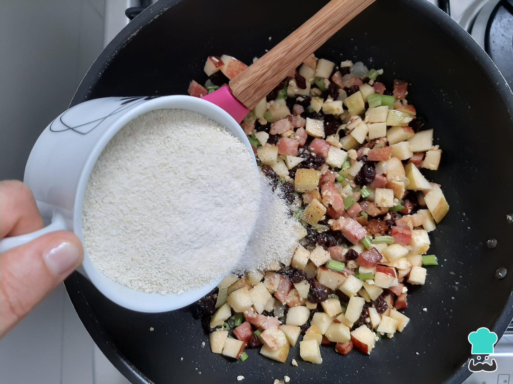 Separe os ingredientes dafarofa para acompanhar pernil assado!