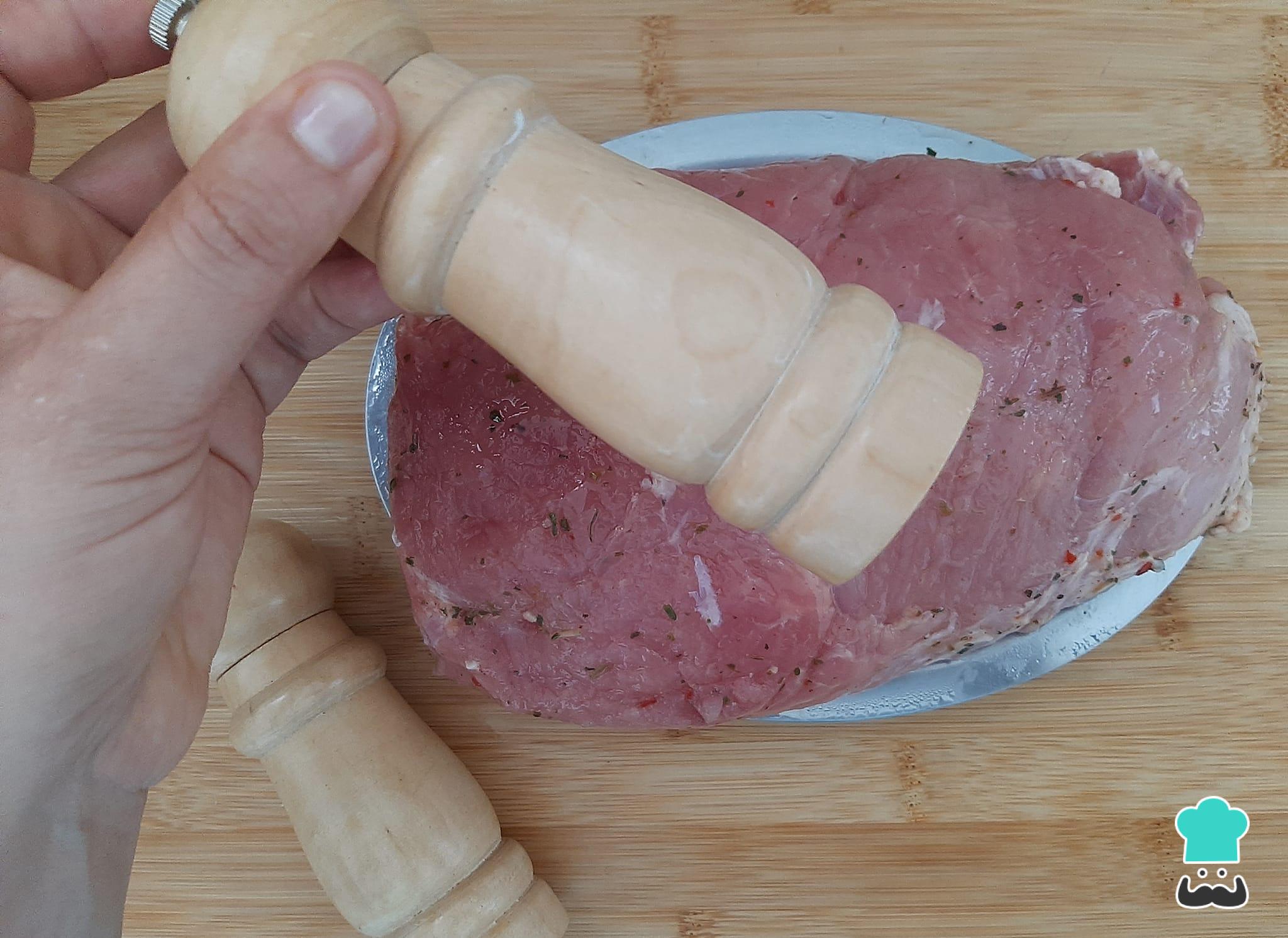 Tempere o pernil com sal, alho e pimenta do reino e deixe-o neste tempero por 1 hora,pelo menos.