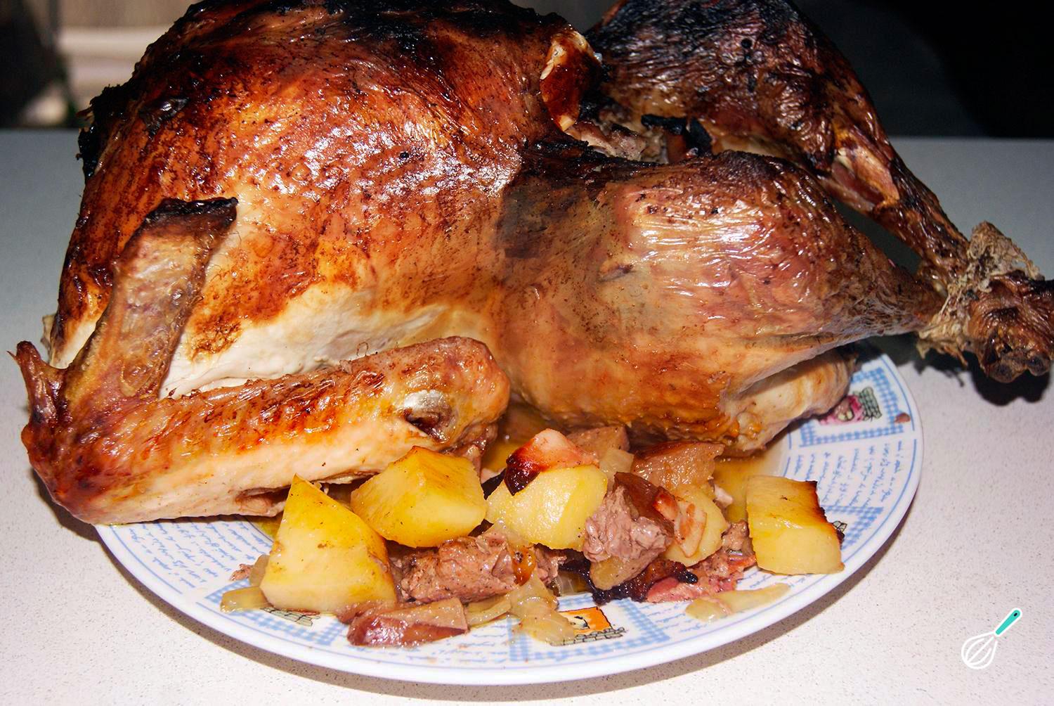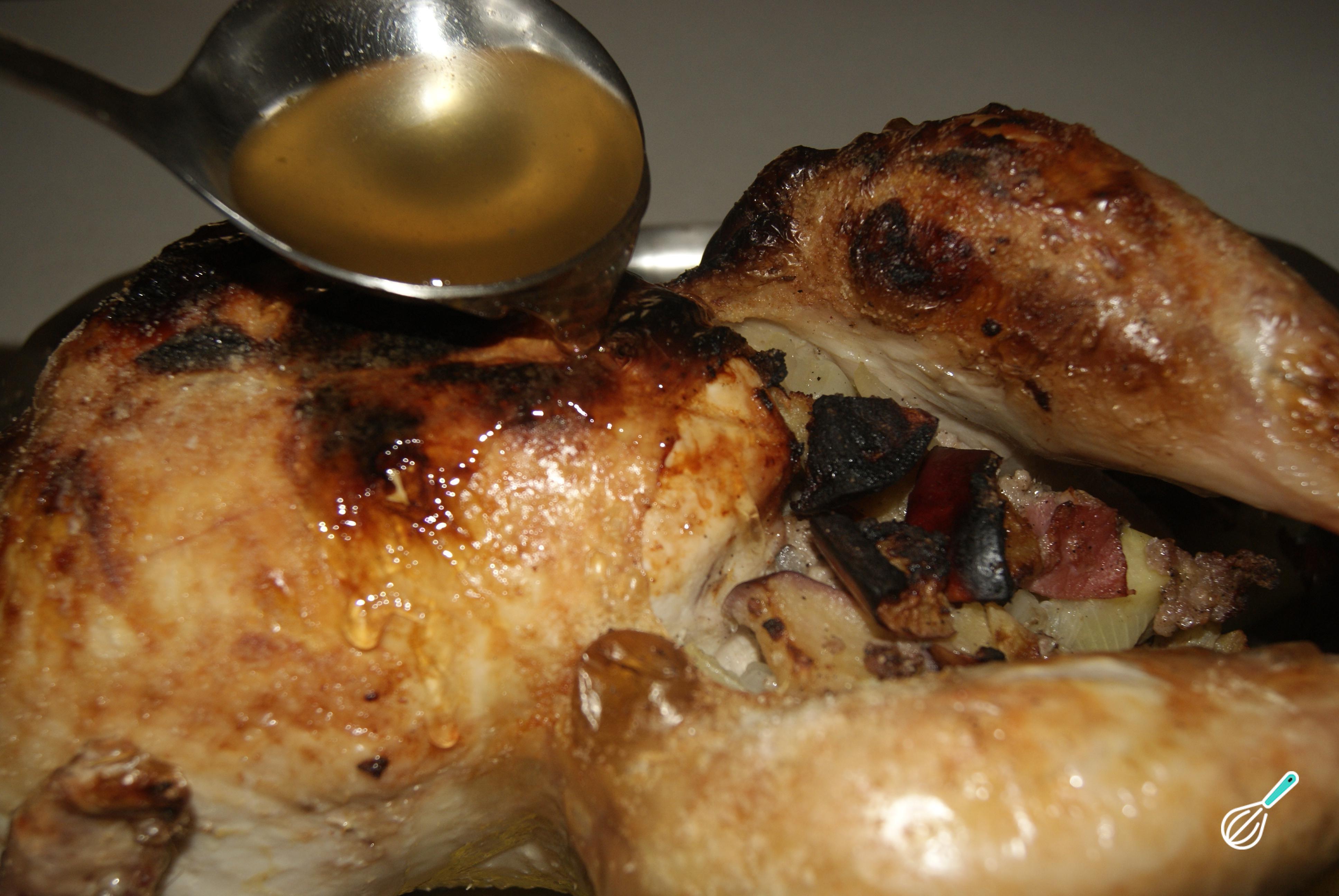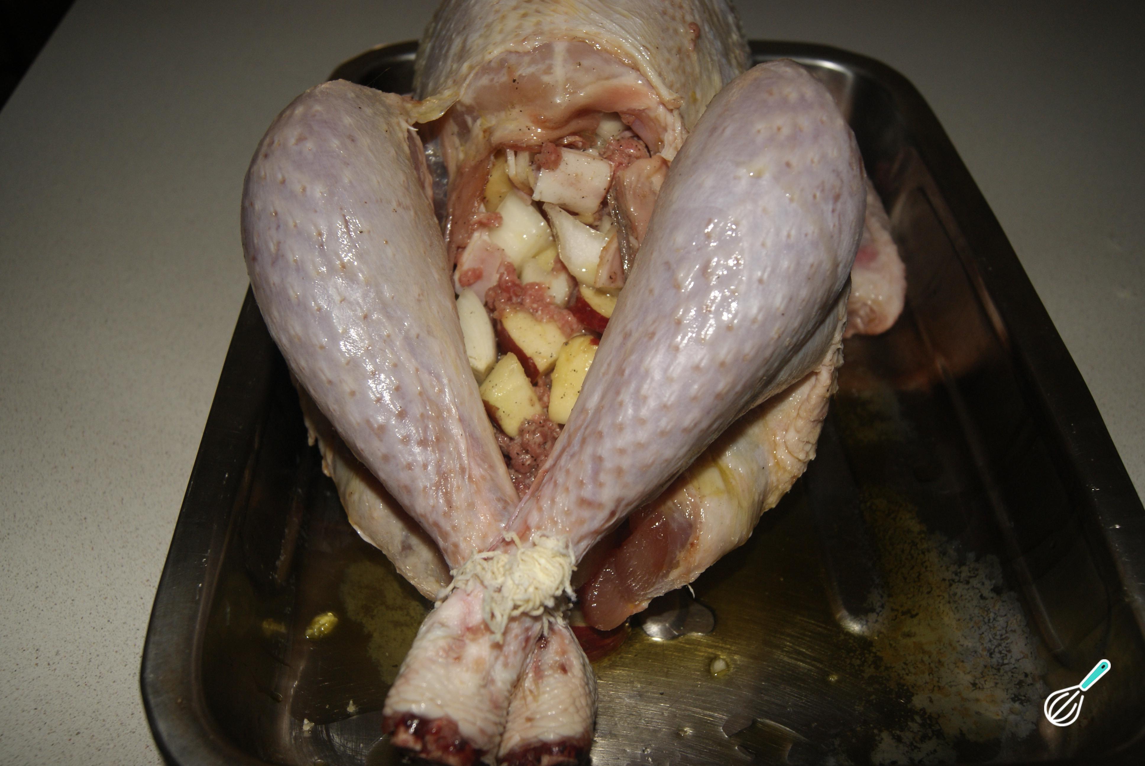 Dica: Se não conseguir introduzir todo o recheio dentro do peru cozinhe à parte para servir como acompanhamento.