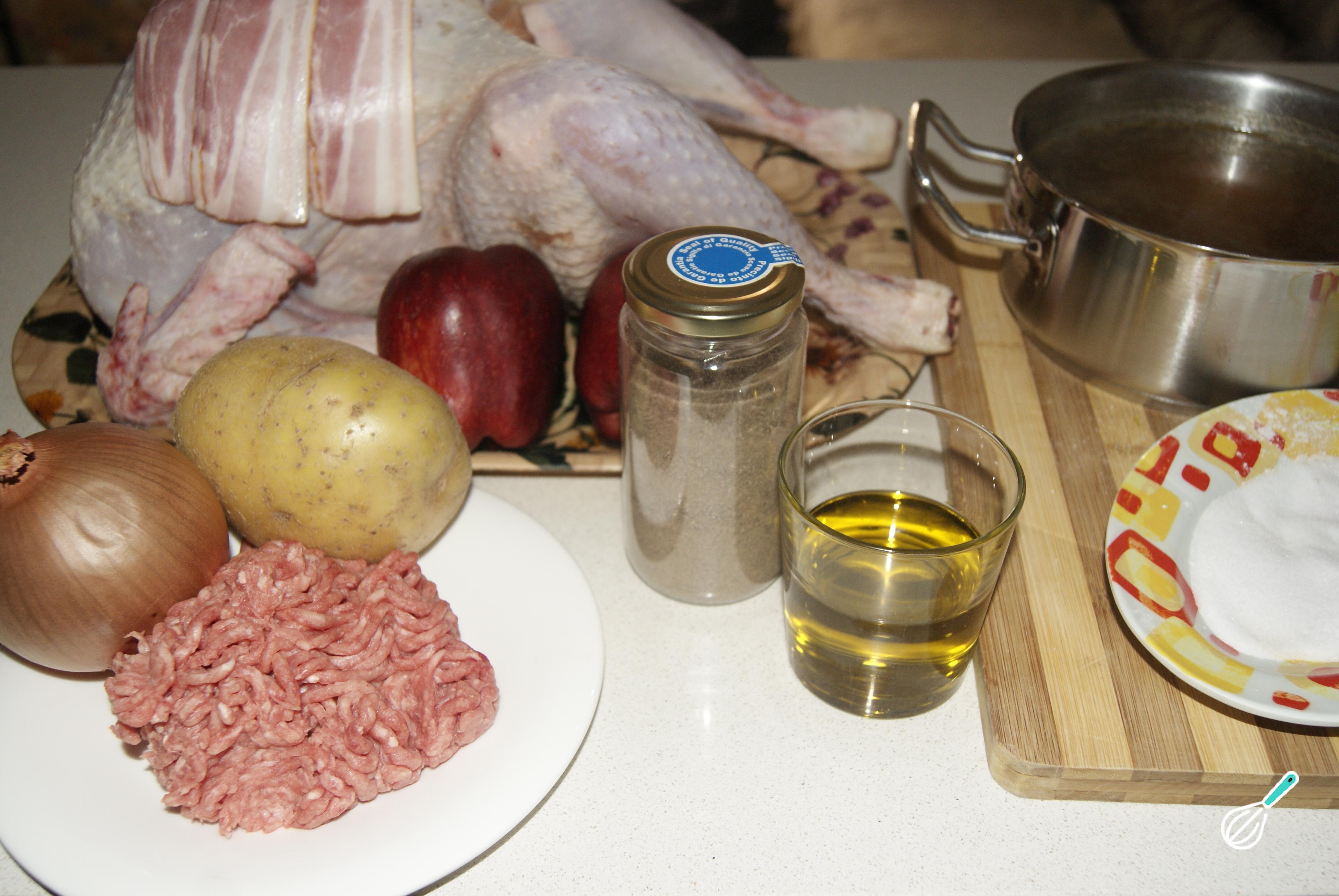 Comece por reunir todos os ingredientes necessários ao preparo desse peru natalino.
