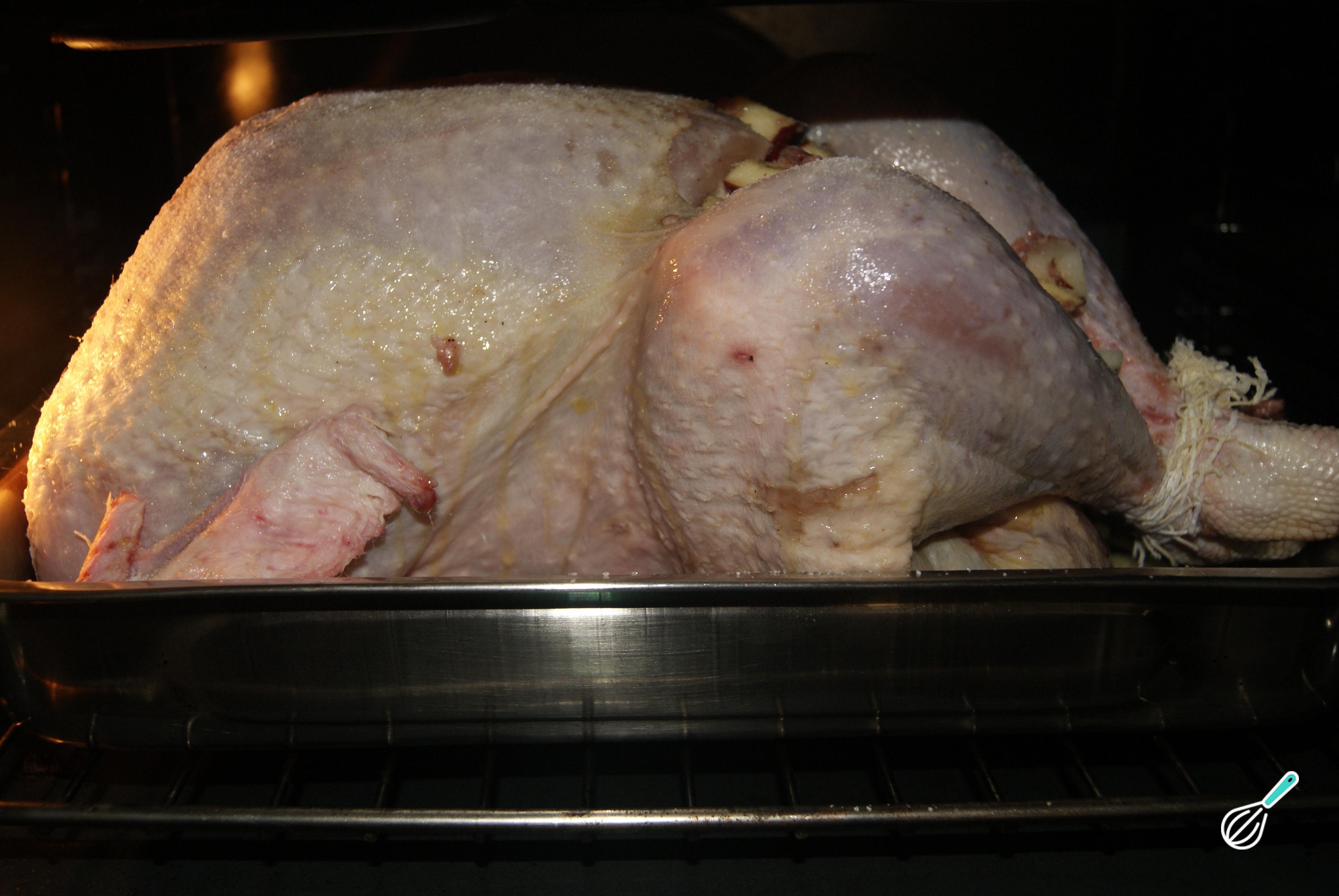 Para evitar que o peru seque, a cada 20 minutos retire-o do forno para umedecer com a própria calda que se forma na assadeira.