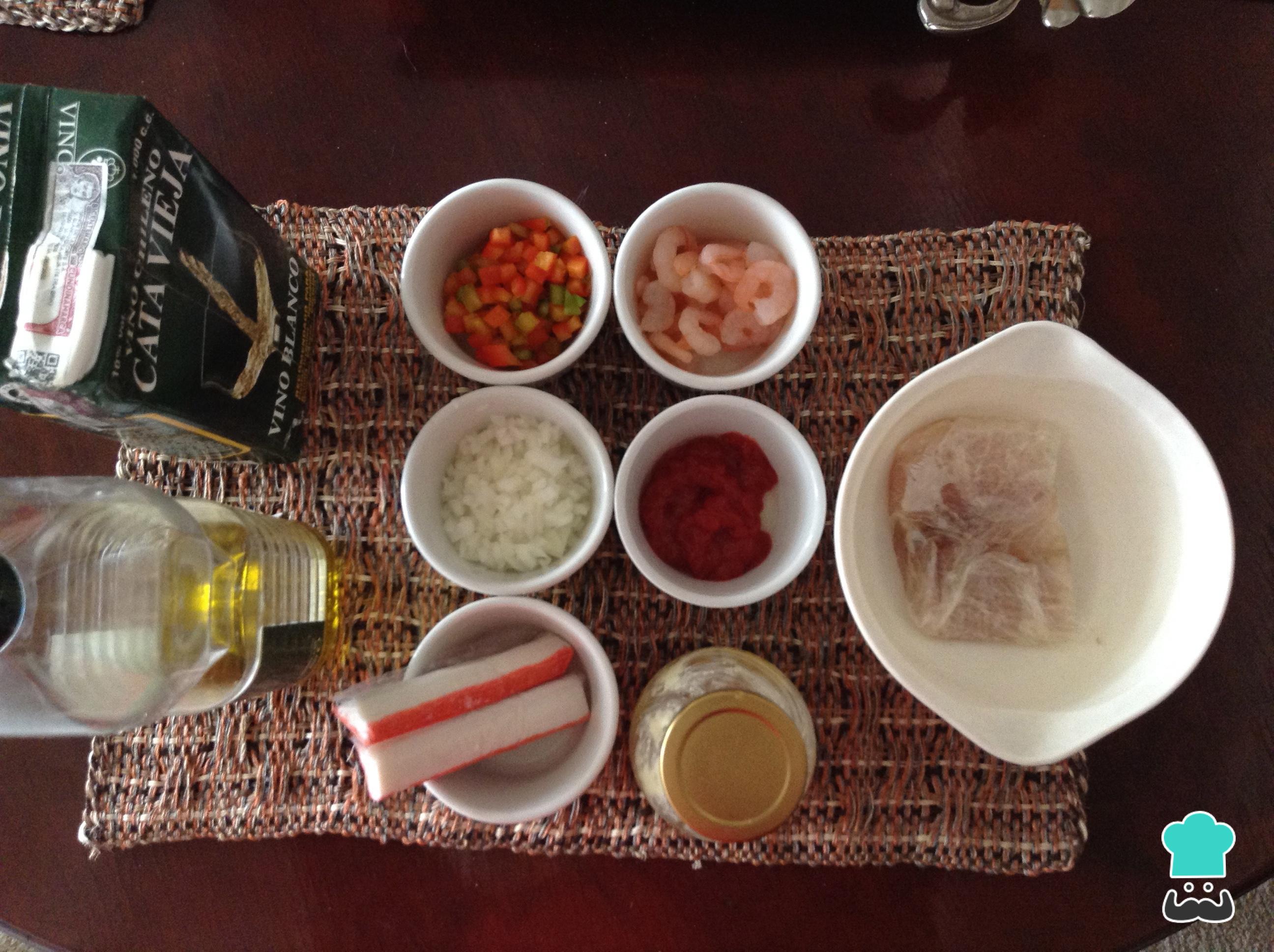 Para preparar esta receita de pescada em molho marinheiro comece por reunir os ingredientes.
