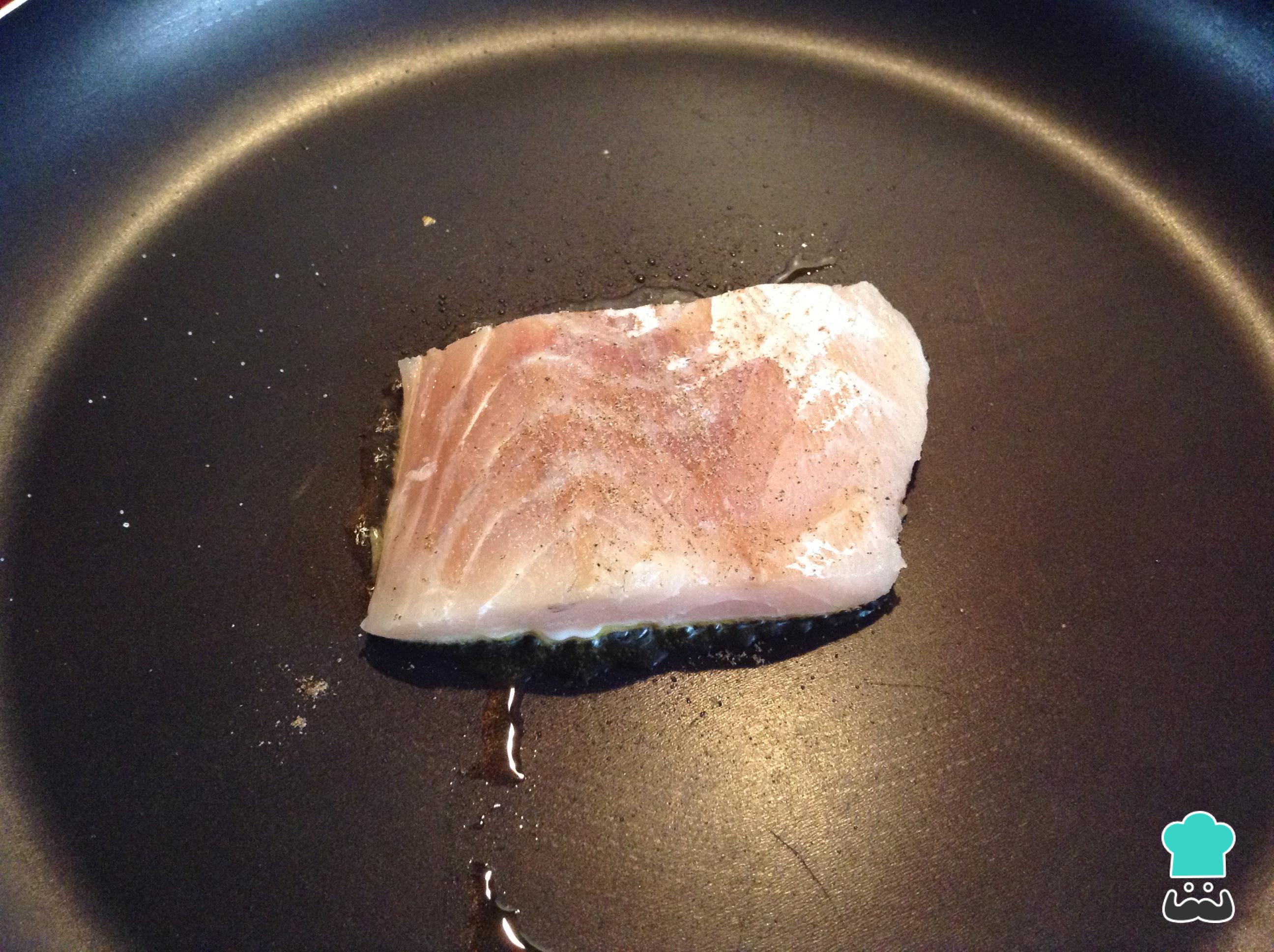 Continue preparando esta receita de pescada em molho marinheiro: na mesma frigideira ou noutra em fogo médio cozinhe, com um pouco de azeite de oliva, os filetes de pescada temperados com sal e pimenta. 4 a 5 minutos de cada lado serão suficientes para o peixe ficar cozinhado.
