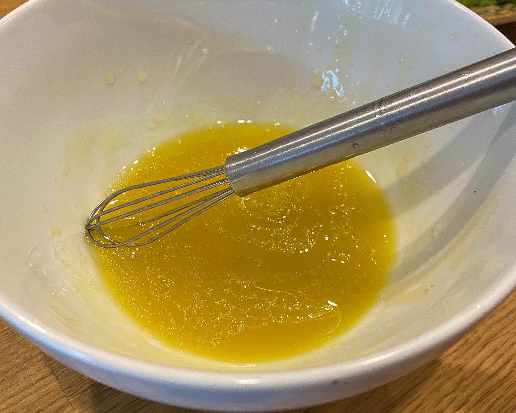 Prepare o molho vinagrete para servir com o seu espetinho sacanagem: misture todos os ingredientes respetivos no liquidificador ou numa tigela usando um garfo ou fouet para mexer. Coloque em um recipiente grande o suficiente para poder mergulhar os espetinhos nele.