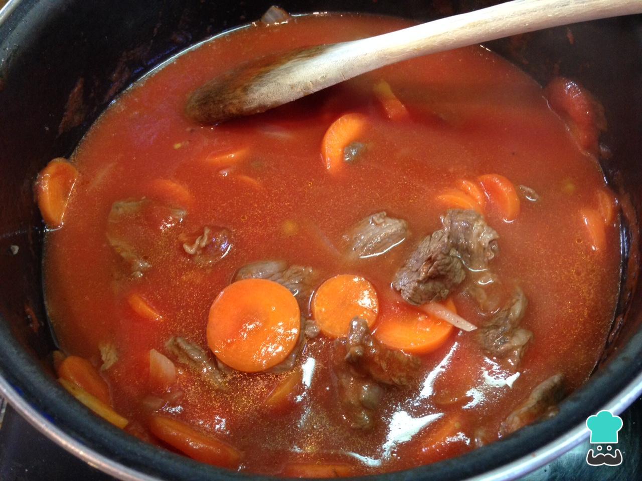 Este será o aspeto da jardineira de carne quando estiver no ponto certo.