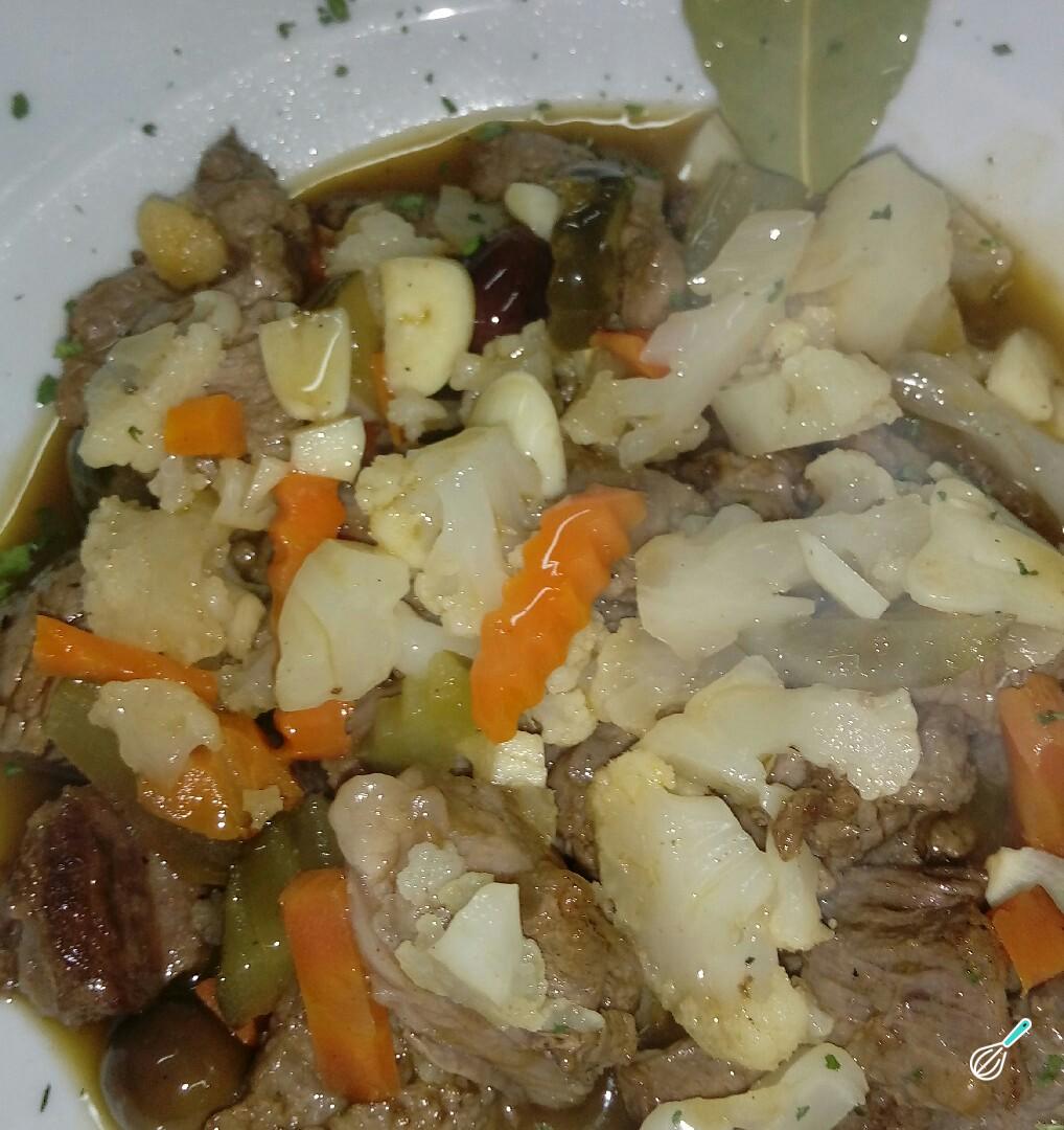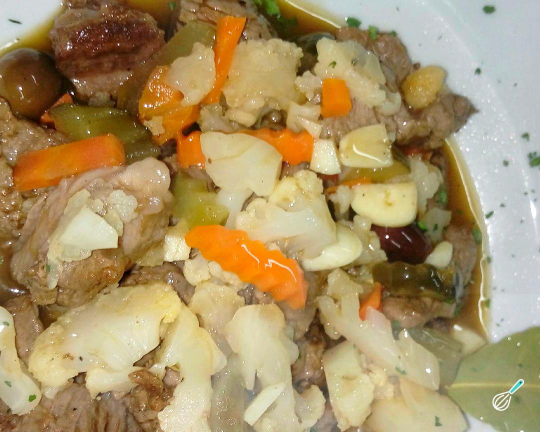 Retire a carne e reserve. Adicione à panela os restantes ingredientes e deixe levantar fervura, para soltar os sabores.