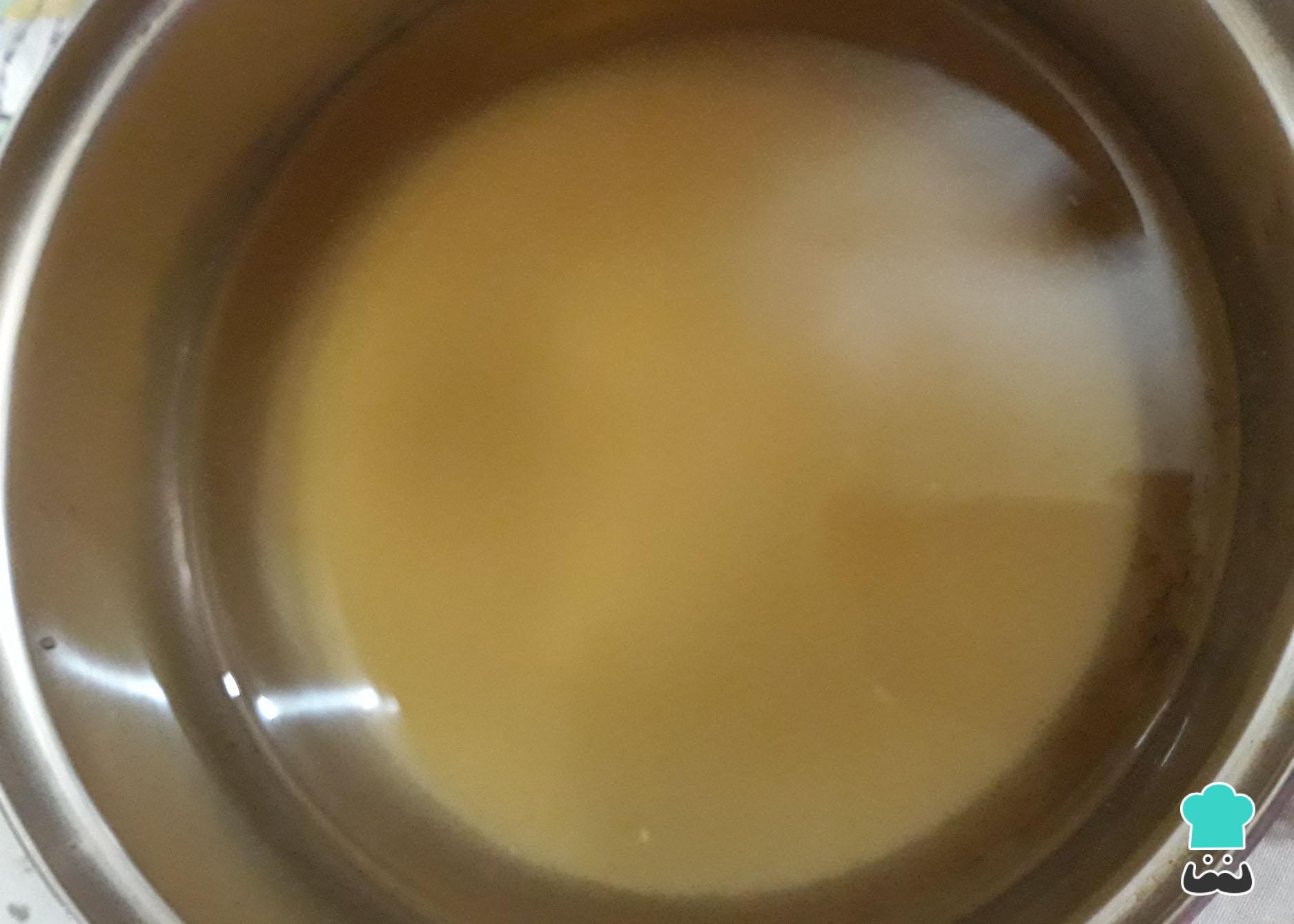 Em uma panela coloque a água, o vinagre, o sal e o açúcar para ferver. Assim que ferver, desligue o fogo.