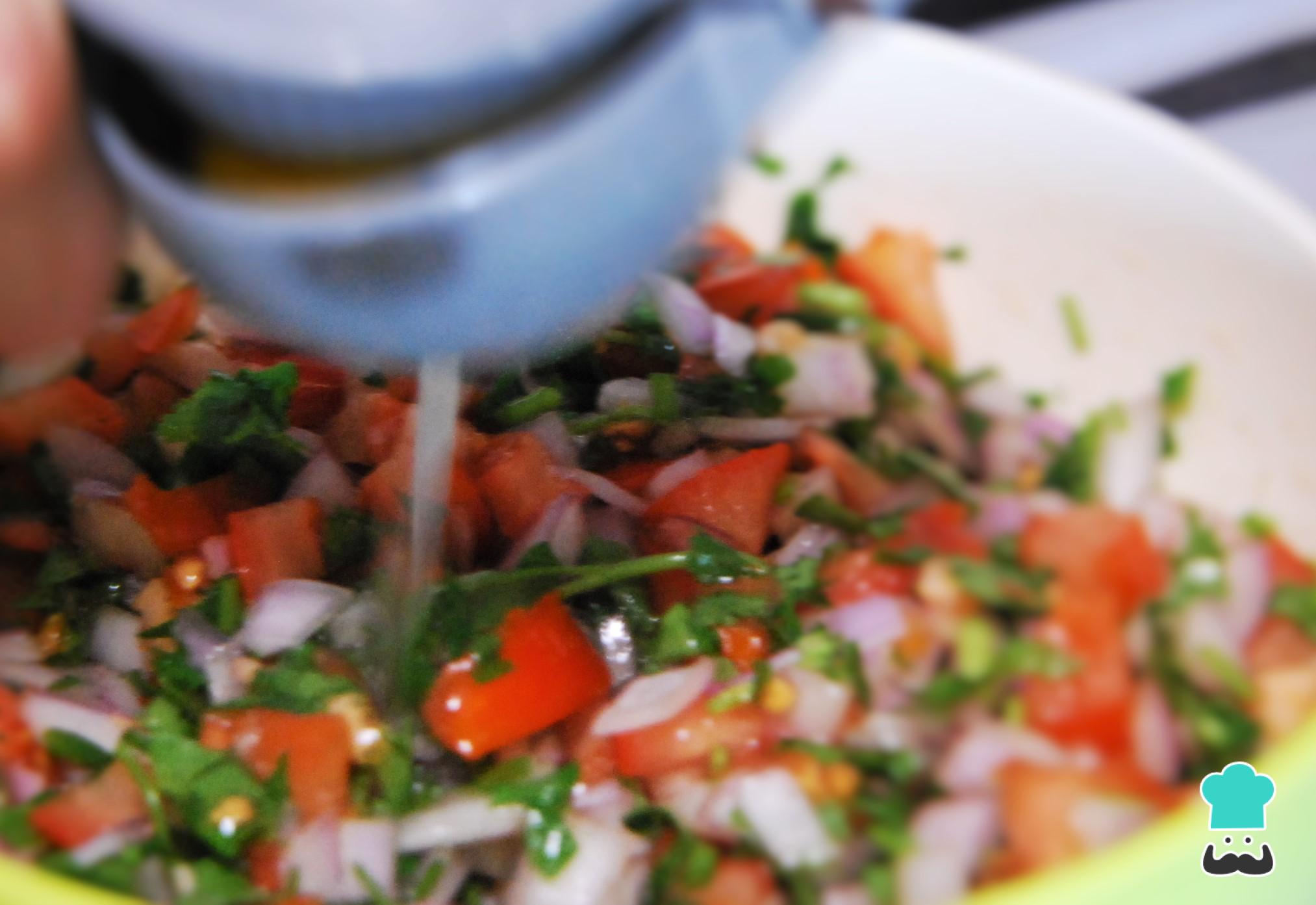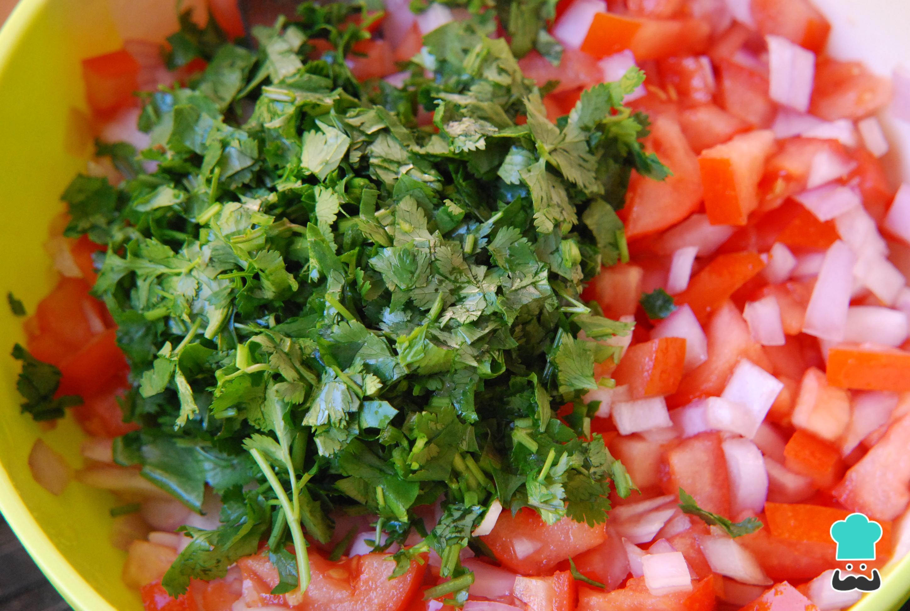 Para fazer um bom pico de gallo é importante usar bastante coentro e fresco, pois tem um sabor mais autêntico. Pique esta erva aromática o mais fino que conseguir.