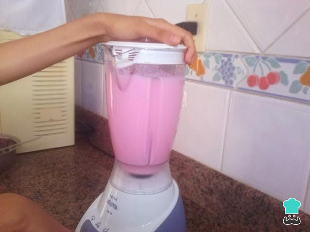 Para fazer seu picolé caseiro de fruta comece por bater todos os ingredientes no liquidificador. A consistência deverá ficar semelhante a um batido.