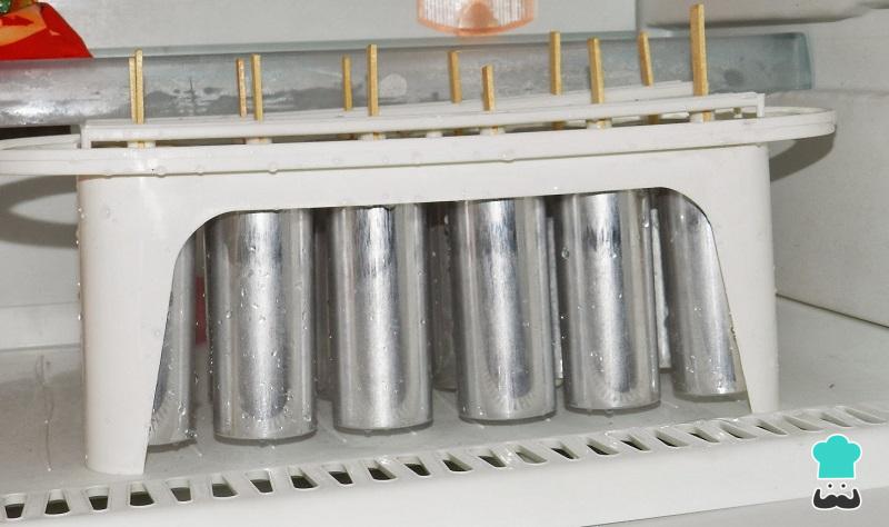 Leve seus picolés caseiros ao freezer de um dia para outro (24h), de forma a ficarem bem consistentes.