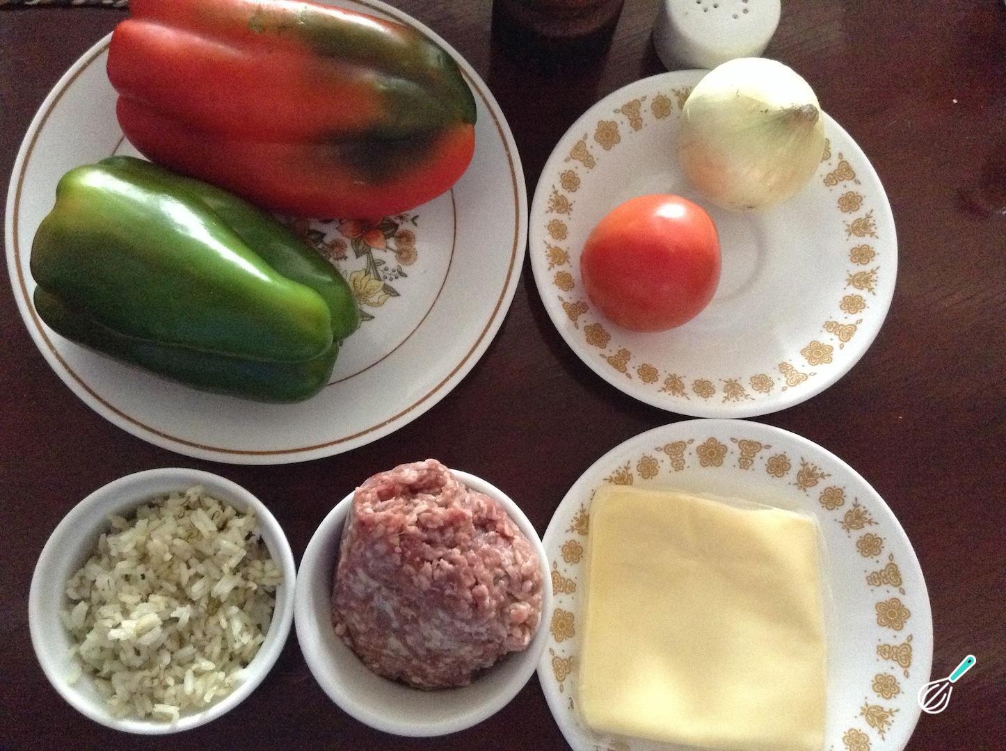 Para fazer esta receita de pimentão recheado comece por reunir os ingredientes. Assim será mais rápido e fácil preparar.