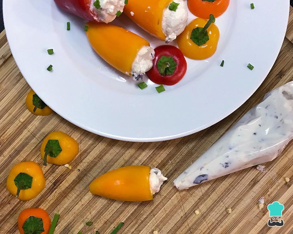 Coloque o recheio num saco de confeitar (ou um saquinho com a pontinha cortada) e recheie os pimentões - nada de miséria, hein! Pode caprichar!