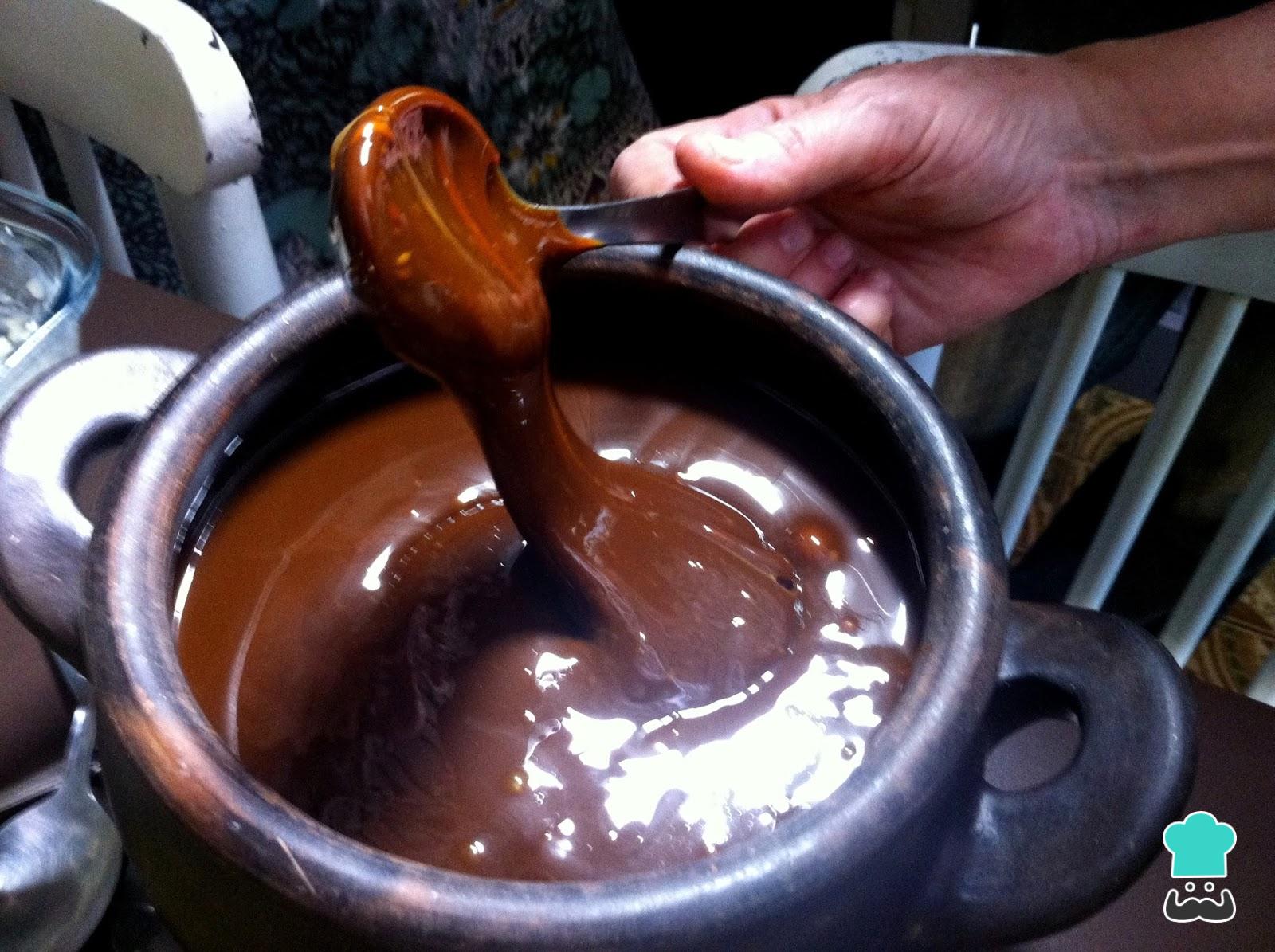 Assim que ferver, reduza o fogo e cozinhe por 3-4 horas, mexendo de vez em quando. O ideal é obter uma mistura escurinha e cremosa que desgruda da panela, e todo esse tempo é necessário para que o creme não queime e fique com a consistência certa no final.