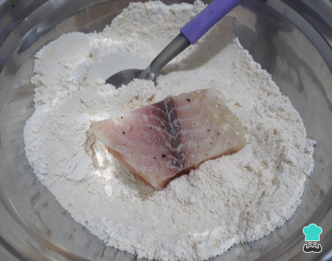Coloque o óleo esquentando e, para empanar o peixe misture a farinha de trigo com o fubá. Passe os filés temperados nessa mistura e aperte ligeiramente, para grudar os ingredientes nos filés e conseguir uma casquinha firme.