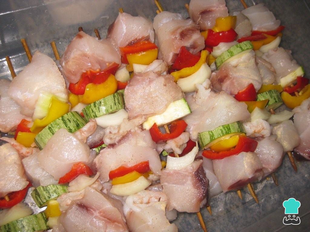Para preparar esta receita de pintado no espeto misture todos os ingredientes (com exceção do sal, dos palitos de espeto e dos legumes) num recipiente e coloque os filés de molho nessa mistura. Deixe ficar, no mínimo, durante 30 minutos, sendo que o ideal será 1-2 horas.