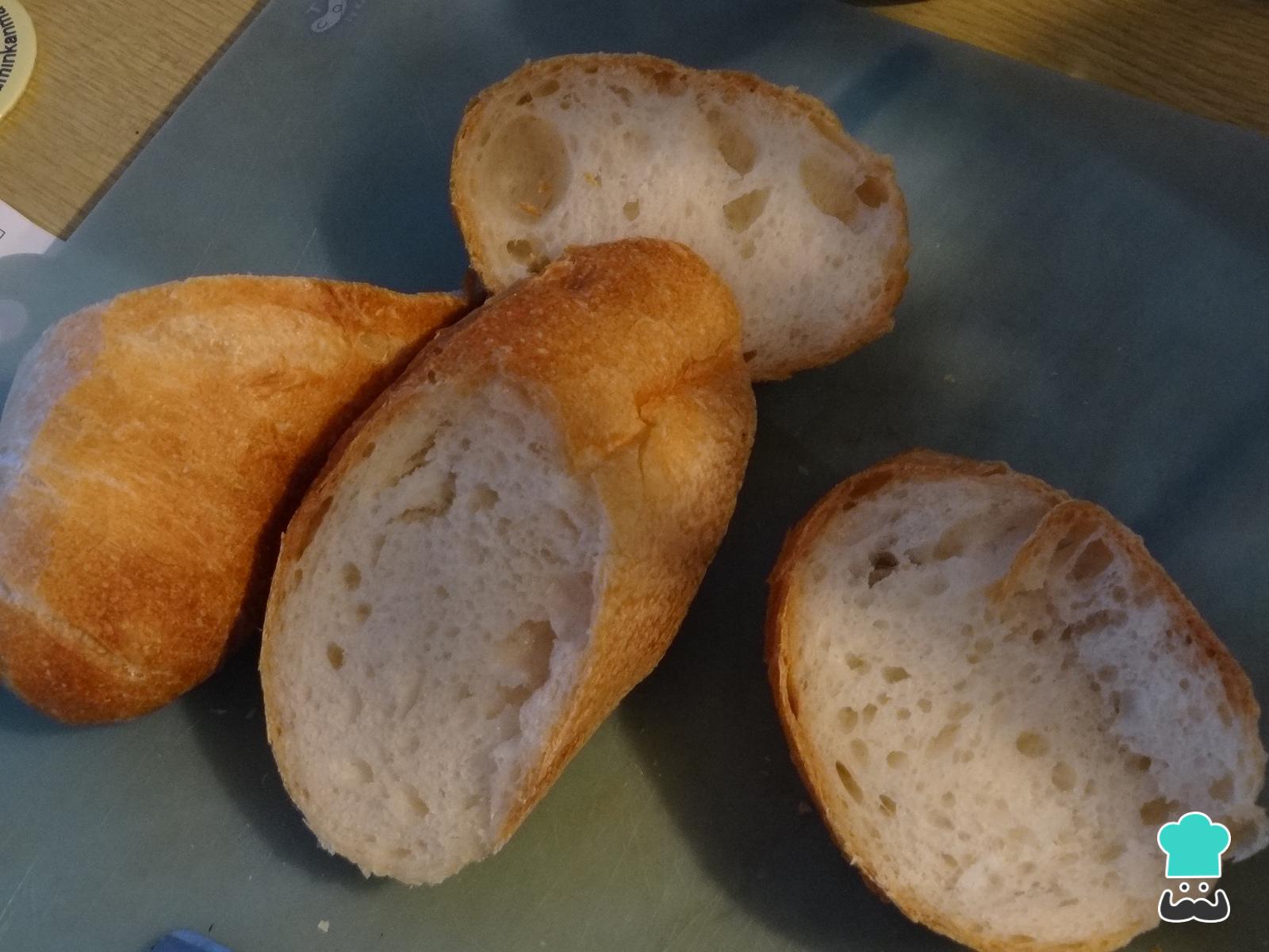 Comece preparando seu pintxo espanhol cortando o pão em fatias na diagonal. Reserve.