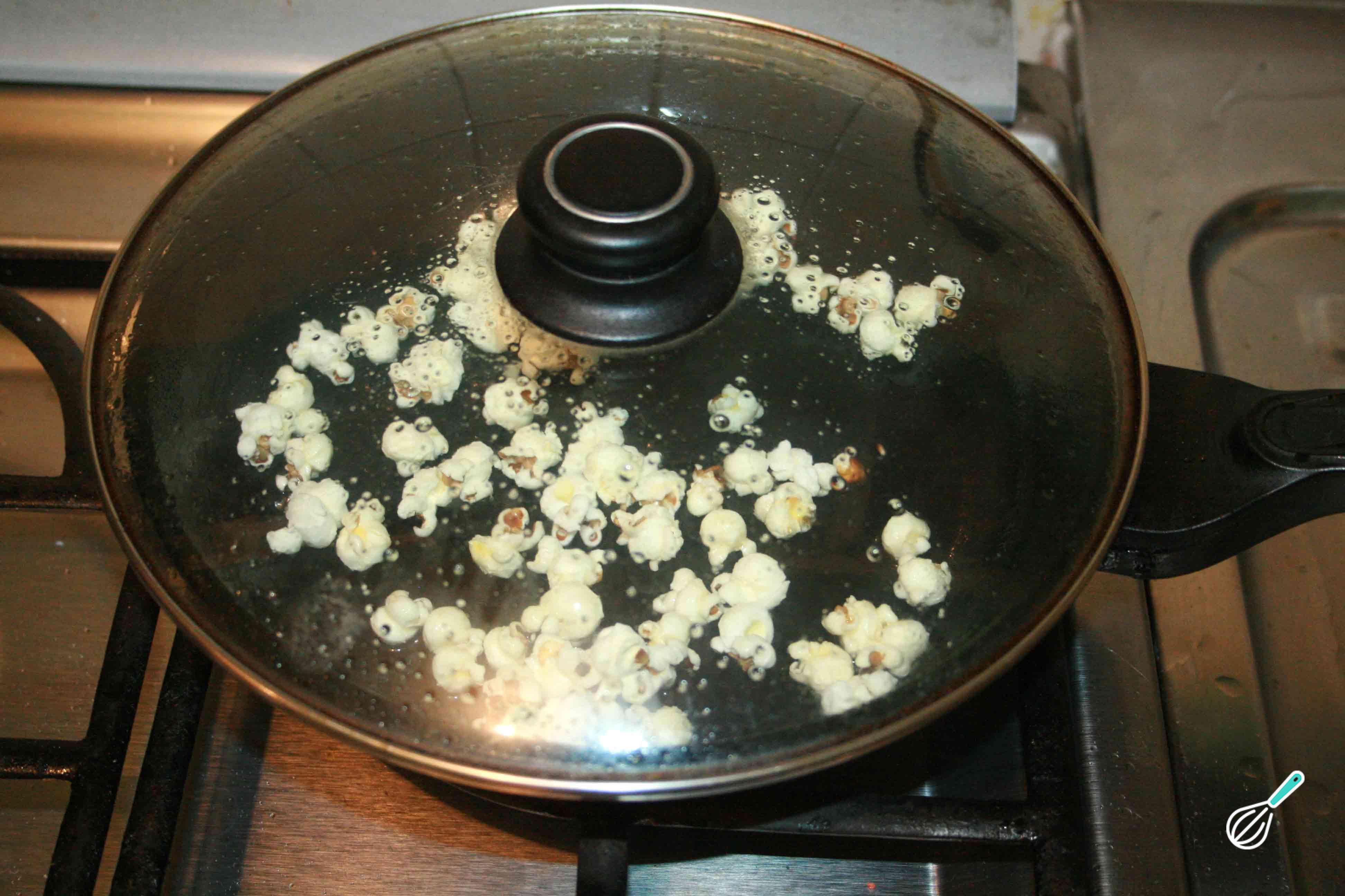 Dica: O ideal será usar uma tampa de vidro, assim você poderá controlar o preparo das pipocas.