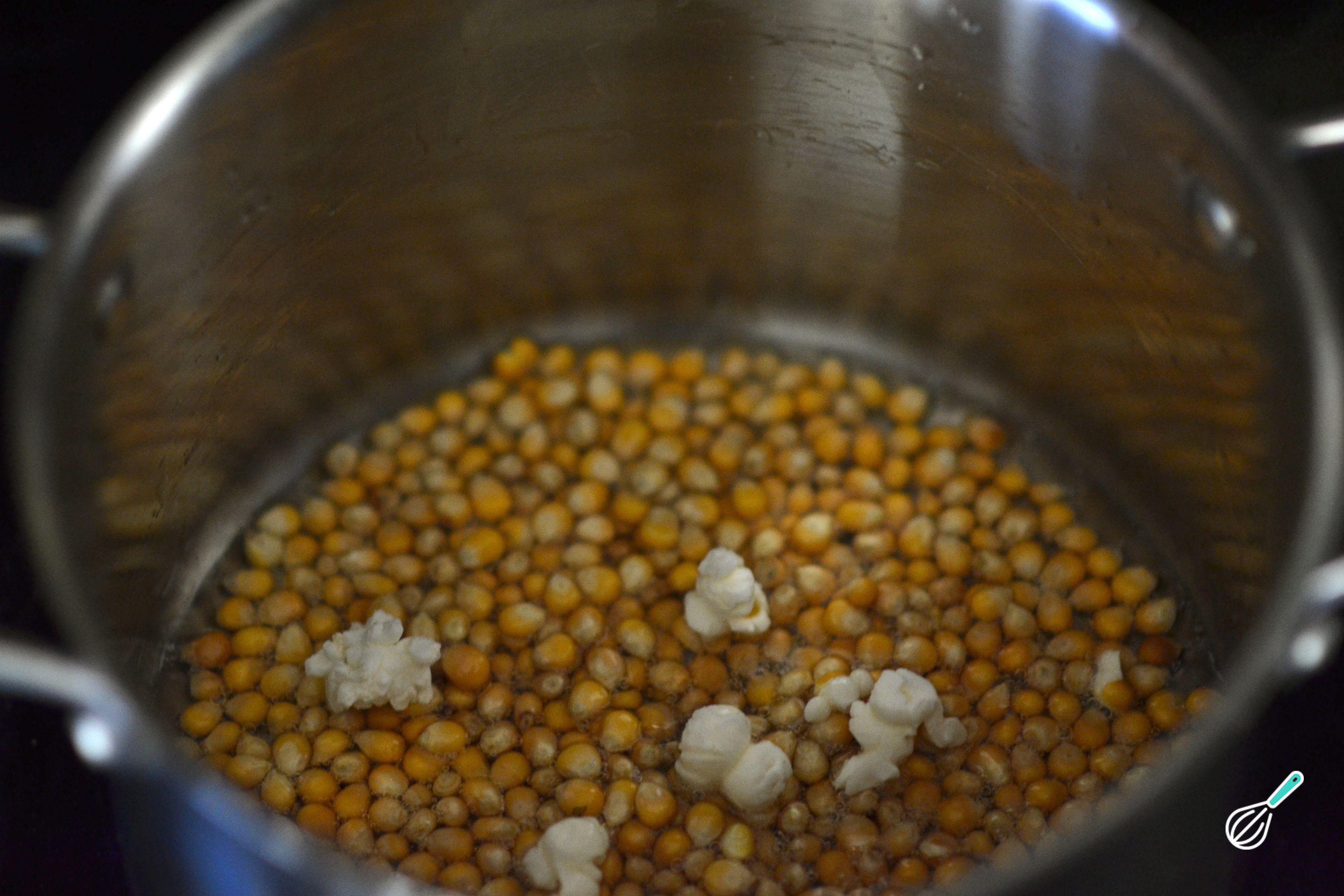 Quando ouvir o primeiro estouro, tampe a panela de imediato. Durante a preparação, vá mexendo a panela sem remover a tampa. Quando se verificarem intervalos de 5 segundos entre os estouros, desligue o fogo.