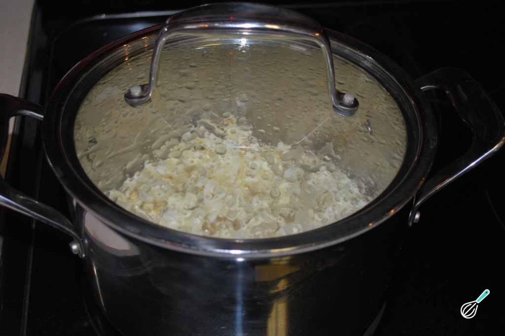 - Abaixe o Fogo quando as Pipocas Pararem de Estourar: Quando o intervalo entre os estouros das pipocas for maior que 2-3 segundos, desligue o fogo e mantenha a panela tampada por mais alguns segundos para garantir que todas as pipocas estourem.