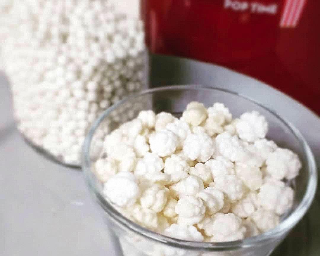 - Quando escutar 3 segundos sem estourar, desligue o fogo e retire a pipoca de sagu para uma tigela