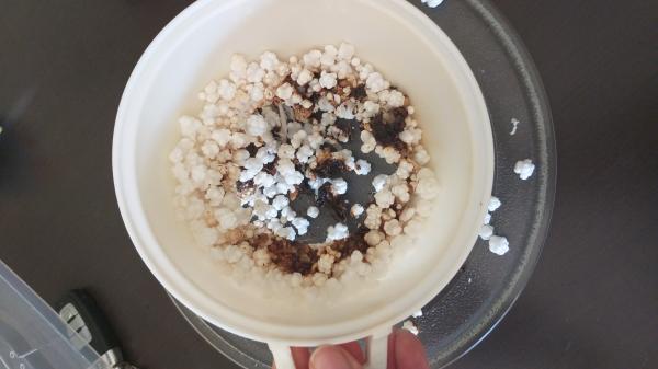 Depois desse tempo, deixe o sagu no interior no microondas por mais uns segundinhos, até parar de estourar. Depois retire com cuidado (o recipiente estará bem quente) e descarte as pérolas de sagu que não estouraram. Está pronta sua pipoca de sagu sem óleo! Bem fácil, não é mesmo? Prove e conte nos comentários o que você achou!