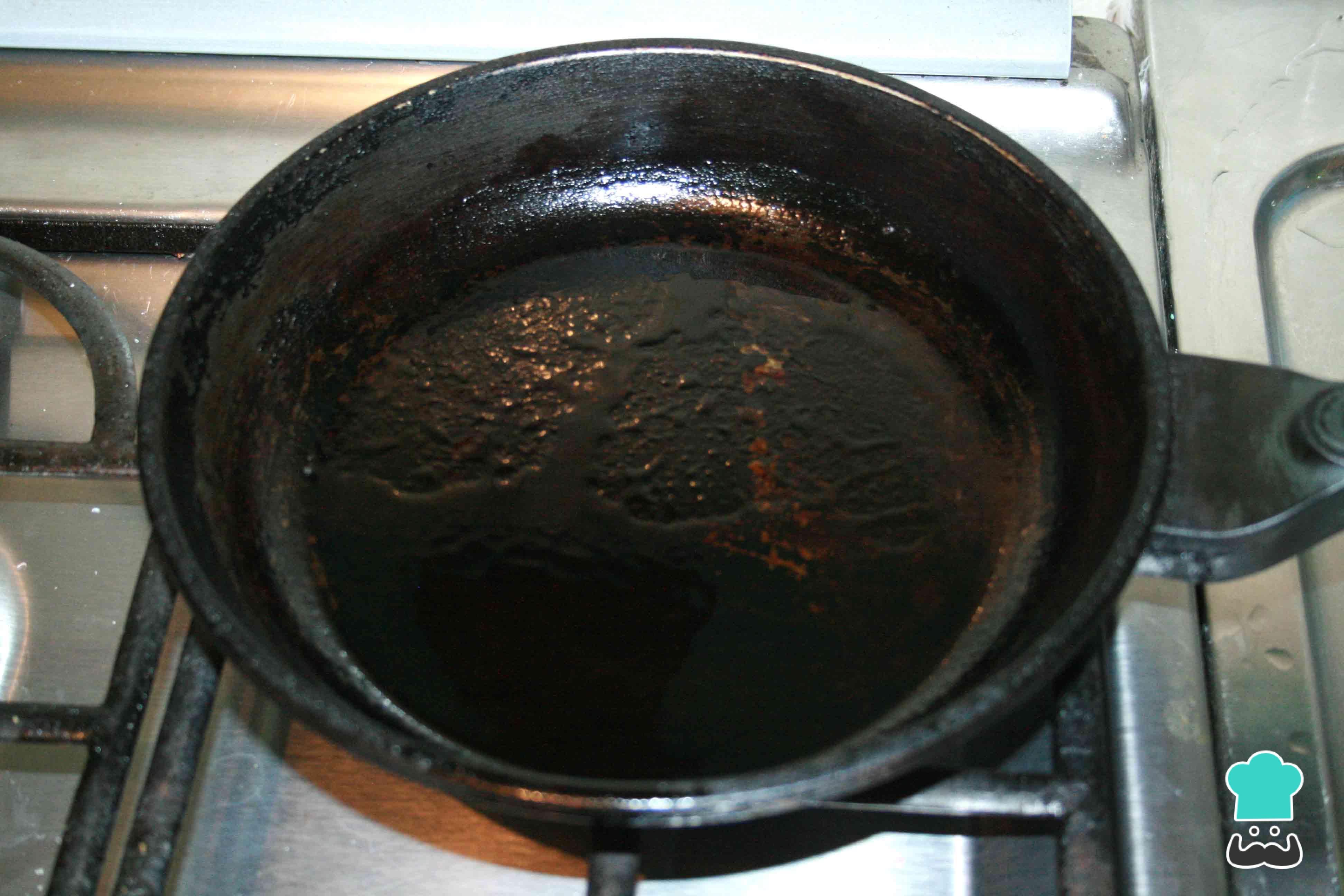 Coloque o azeite ou óleo numa frigideira e espere esquentar.