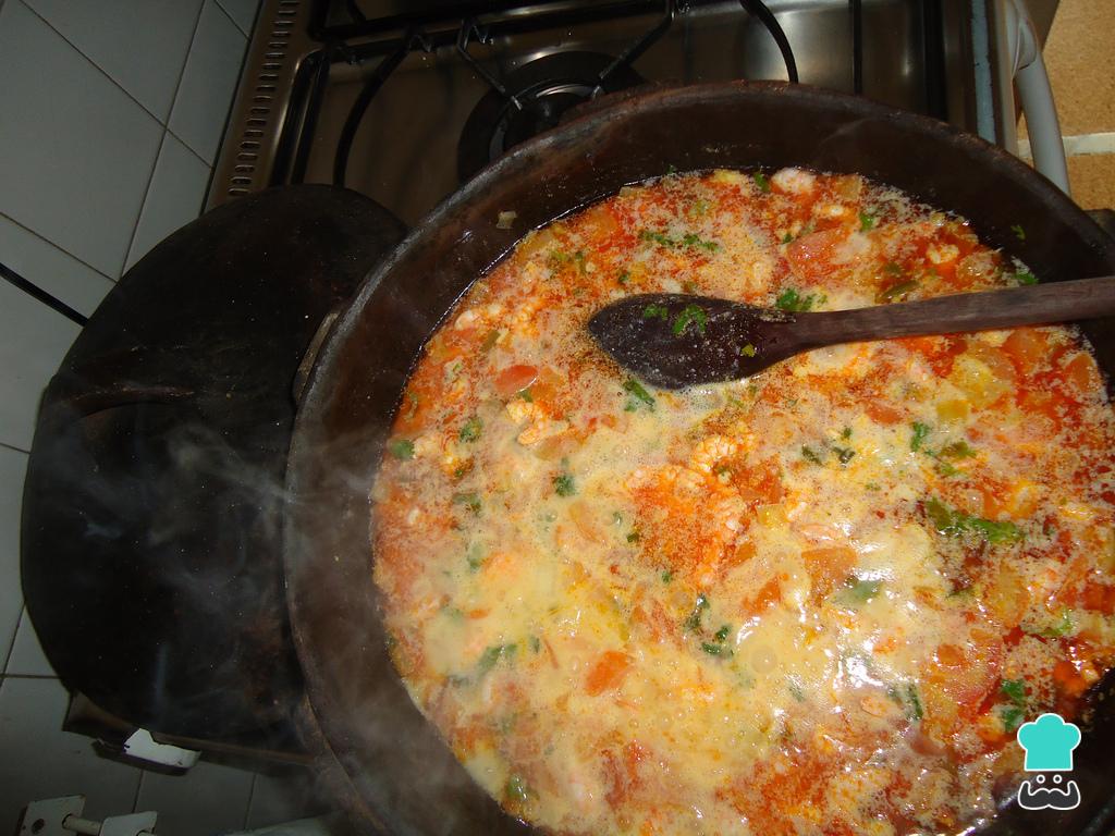 Numa panela de barro coloque o azeite de dendê e refogue a cebola e o alho. Acrescente os pimentões e os tomates em camadas e tempere com sal e pimenta. Coloque o peixe no meio do molho e deixe cozinhar por 20 minutos.