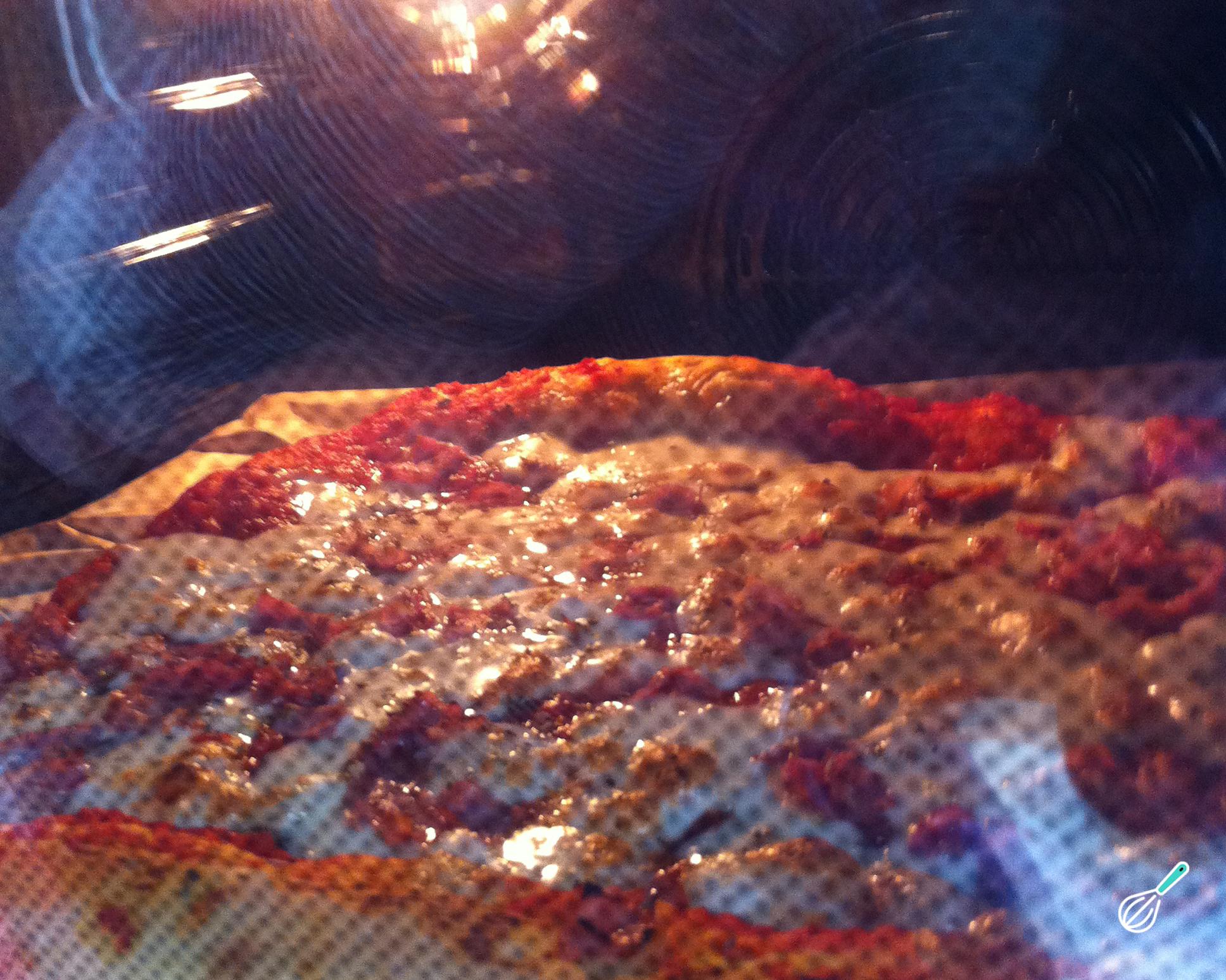 Modele a massa de pizza caseira em forma de bola e coloque numa tigela untada. Cubra com um pano prato ou plástico filme e deixe crescer em um local ameno por 1-2 horas ou até triplicar de volume.