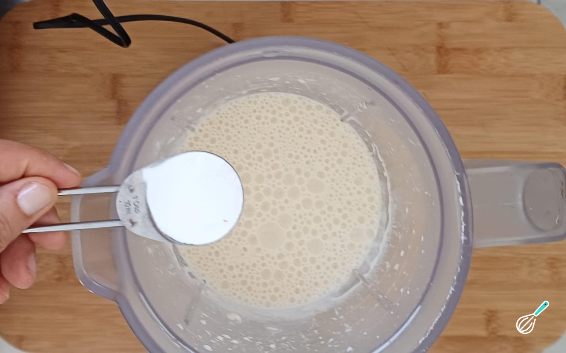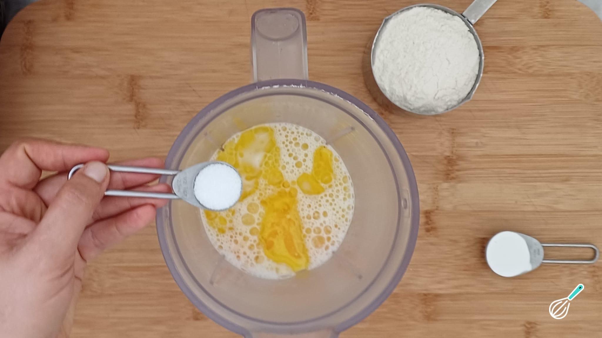 No liquidificador, adicione o ovo, o azeite de oliva, o leite e o sal.