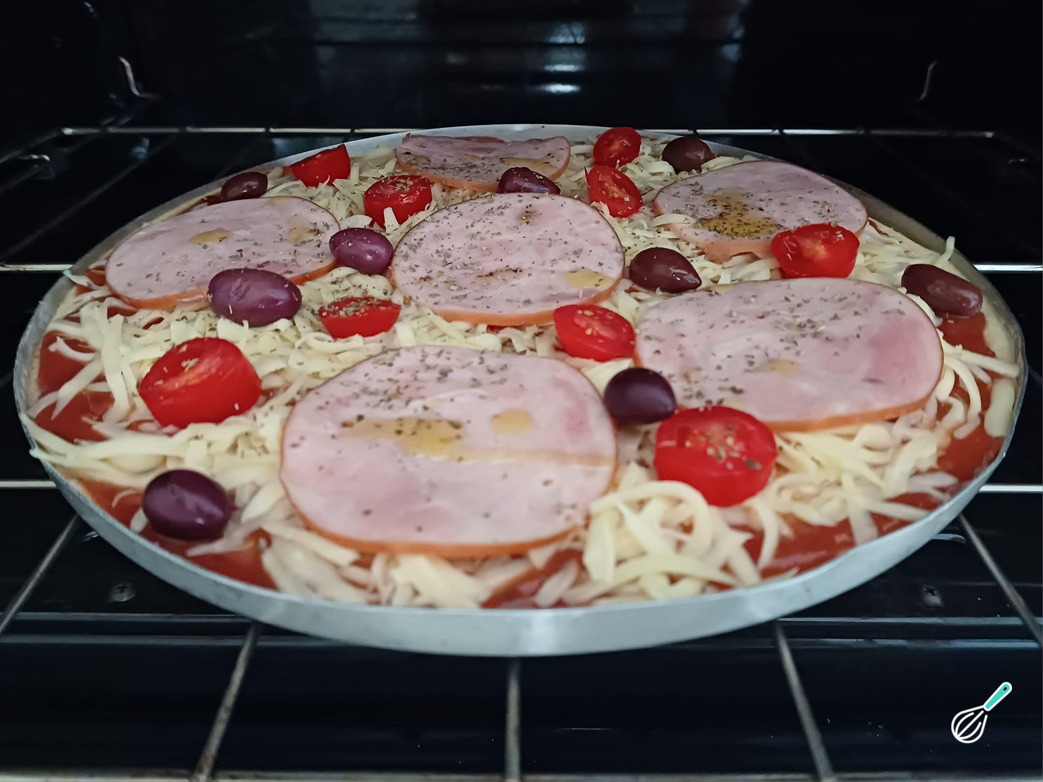 O recheio da pizza pode ser a seu gosto! Aqui, nós recheamos com lombinho e queijo muçarela! Você poderá fazer com outros recheios, como: Atum, 4 queijos, Portuguesa...