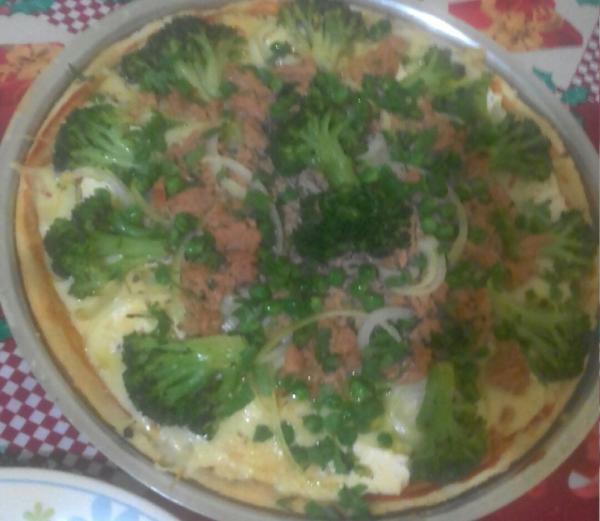 Quando a massa estiver pronta, espalhe-a sobre um recipiente próprio para forno, previamente untada com óleo e leve ao forno por 15 minutos a 180-190 º C.