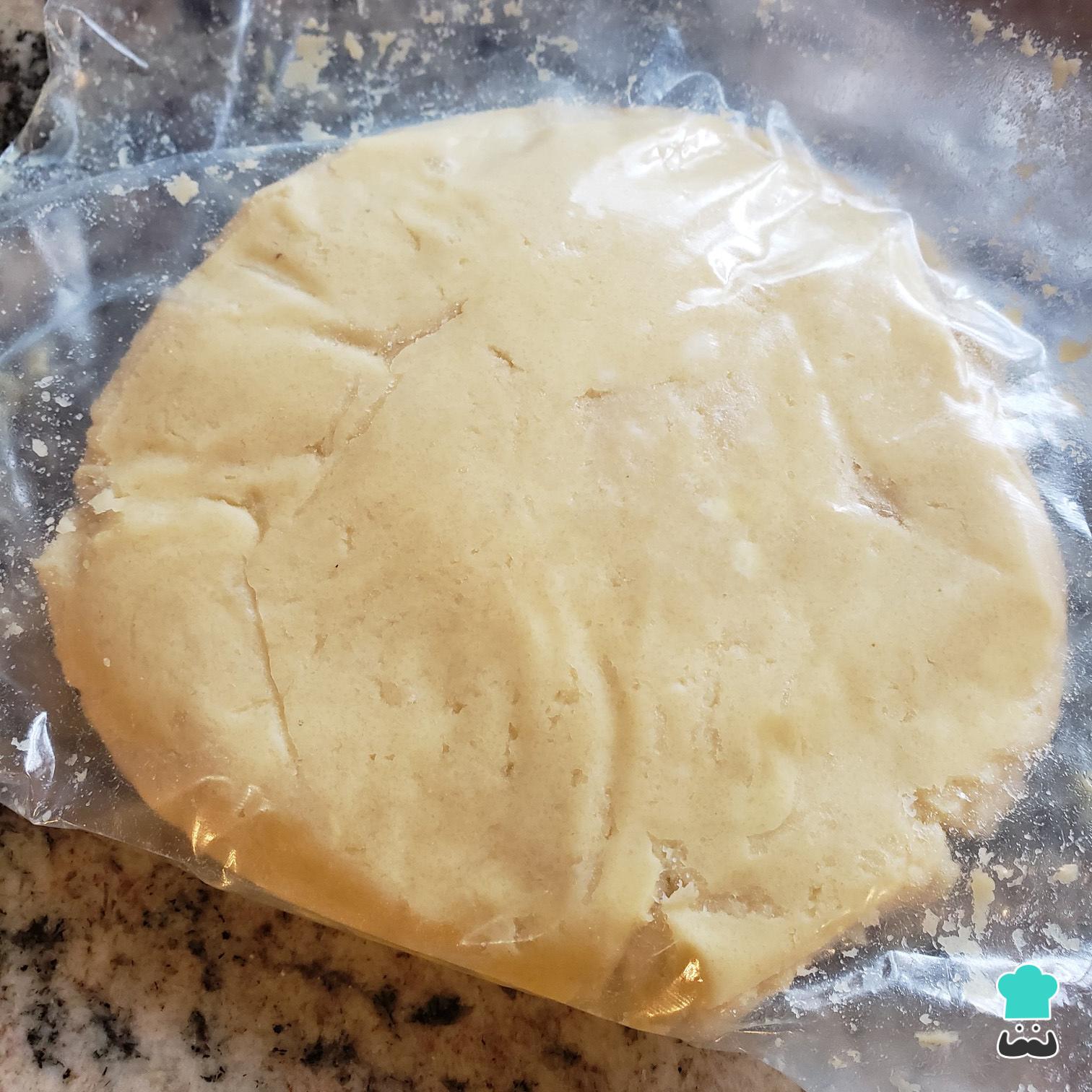 Coloque esta massa de pizza low carb num plástico filme, enrole e dê uma sovadinha de leve. Deixe a massa descansar por 10 minutos ou guarde na geladeira por até 5 dias.