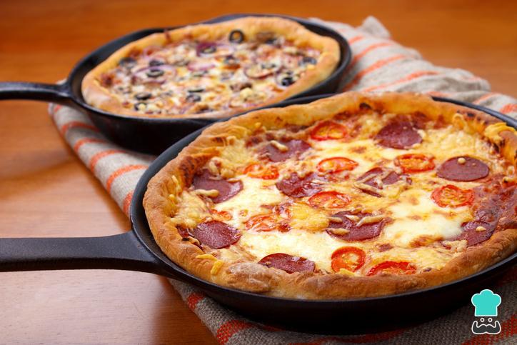 Pronto para preparar uma pizza de frigideira? Não deixe de experimentar pela quantidade de passos, porque na verdade esta receita é super fácil, mas quero explicar todos os truques e detalhes para que você obtenha uma pizza sem forno perfeita. Os sabores sempre são ao gosto de cada um, mas nesta ocasião preparei uma pizza de calabresa e outra de anchovas,cebola e azeitonas. Se não gostar de algum ingrediente, só terá que o trocar. As massas de pizza na frigideira se fazem praticamente da mesma forma que uma pizza de forno, mas não necessitará de fermento, desta forma farei uma massa de pizza fácil e rápida com cerveja, tudo pensado para que obtenha um prato saboroso, sem ter muito trabalho na cozinha. Espero que goste desta receita de pizza. Continue no TudoReceitas e siga o passo a passo.