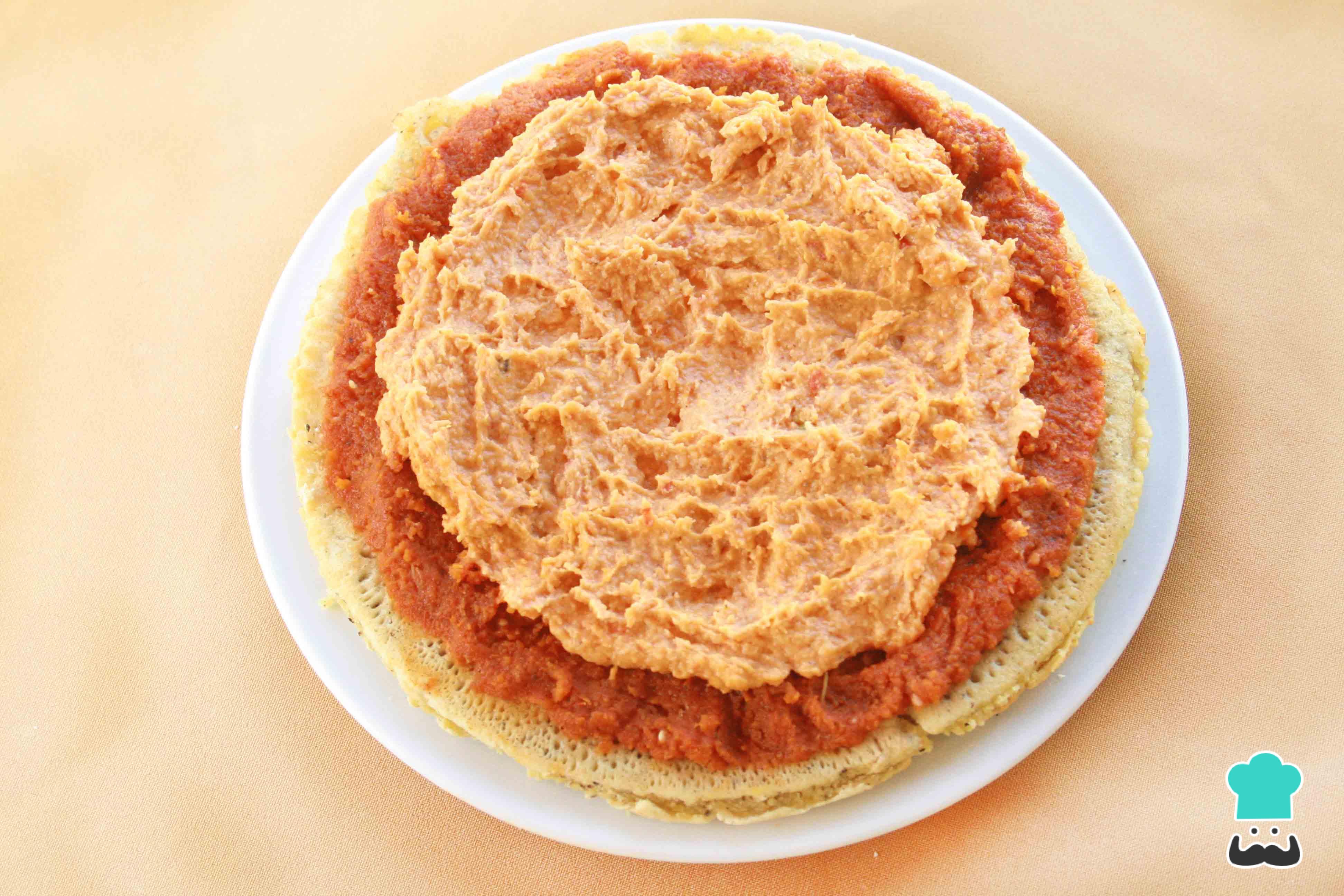 Dica: Se você preferir uma pizza de massa fina use 2⁄3 de xícara de farinha de grão de bico e 2⁄3 de xícara de água.