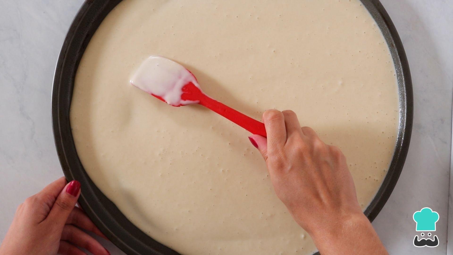 Despeje a massa na forma, que precisa estar previamente untada com manteiga e farinha ou, como nós usamos, um desmoldante.