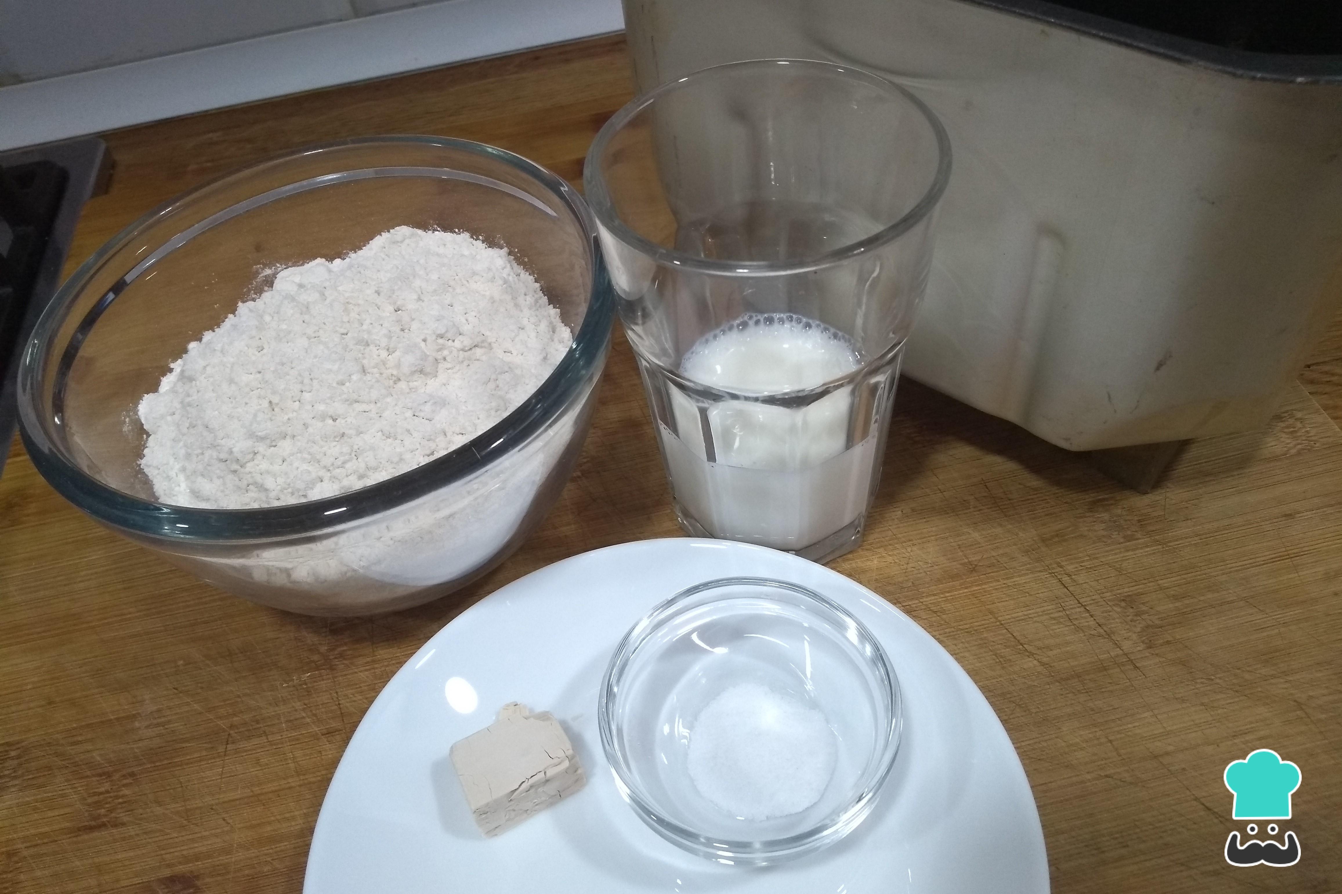Coloque metade do leite num bowl ou na máquina panificadora, adicione o fermento desfeito com as mãos e 2 colheres de sopa de farinha. Misture até obter uma massa mole e reserve por 15 minutos.