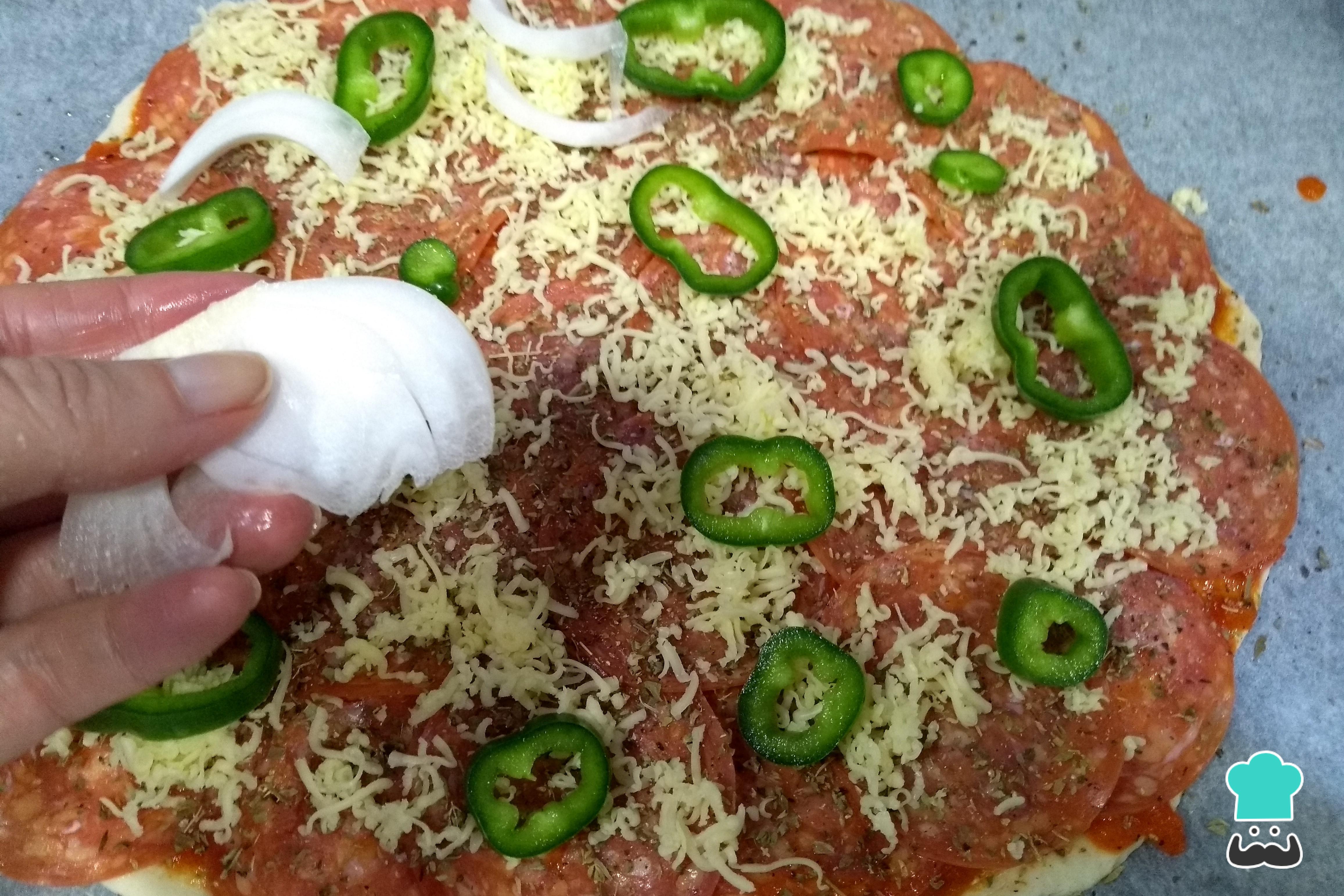 Dica: Não precisa assar a massa de pizza antes de colocar os recheios da cobertura nela.