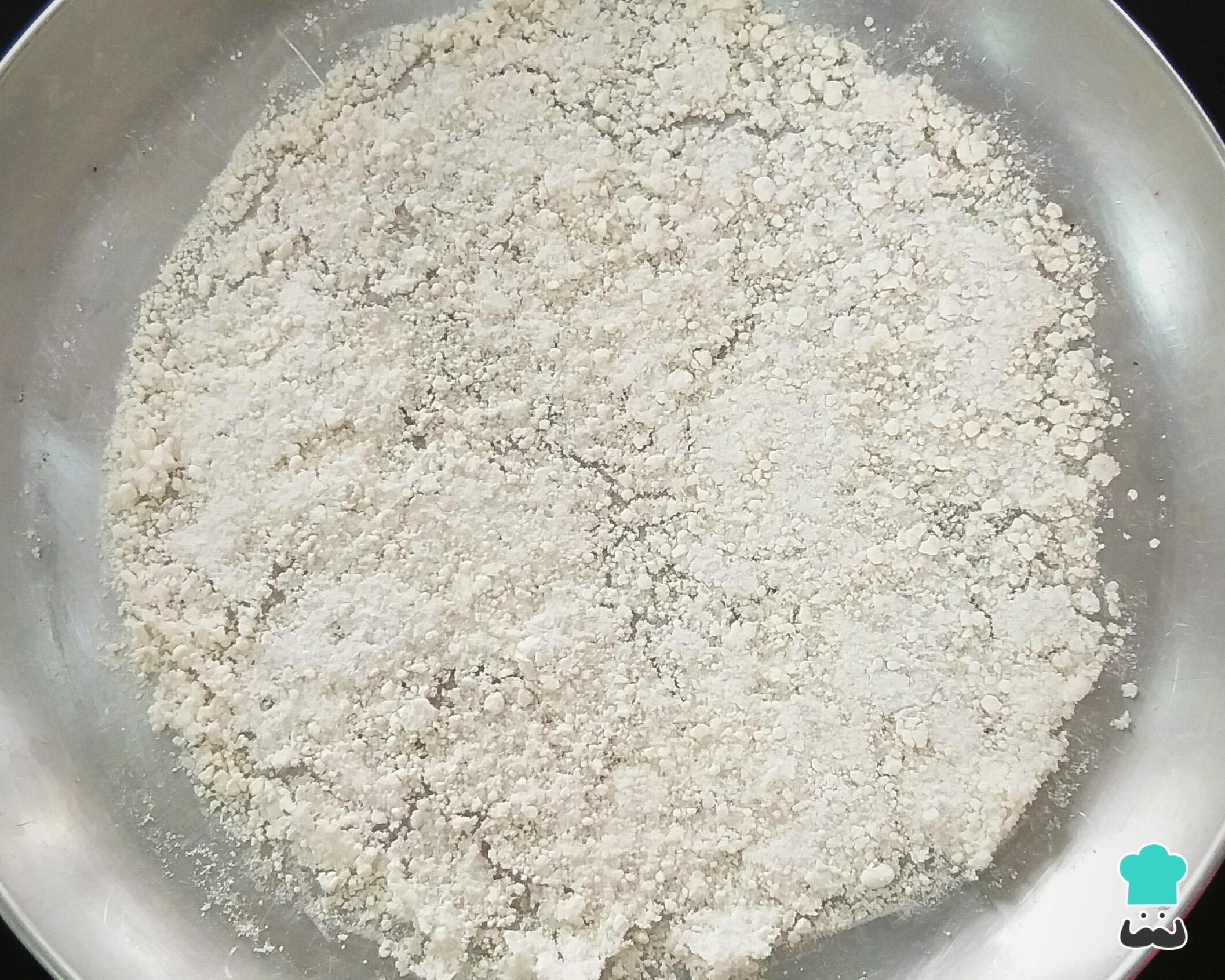 Polvilhe a tapioca diretamente na forma de pizza e leve ao fogo baixo por cerca de 1 minuto (até os grãos começarem a se unir).