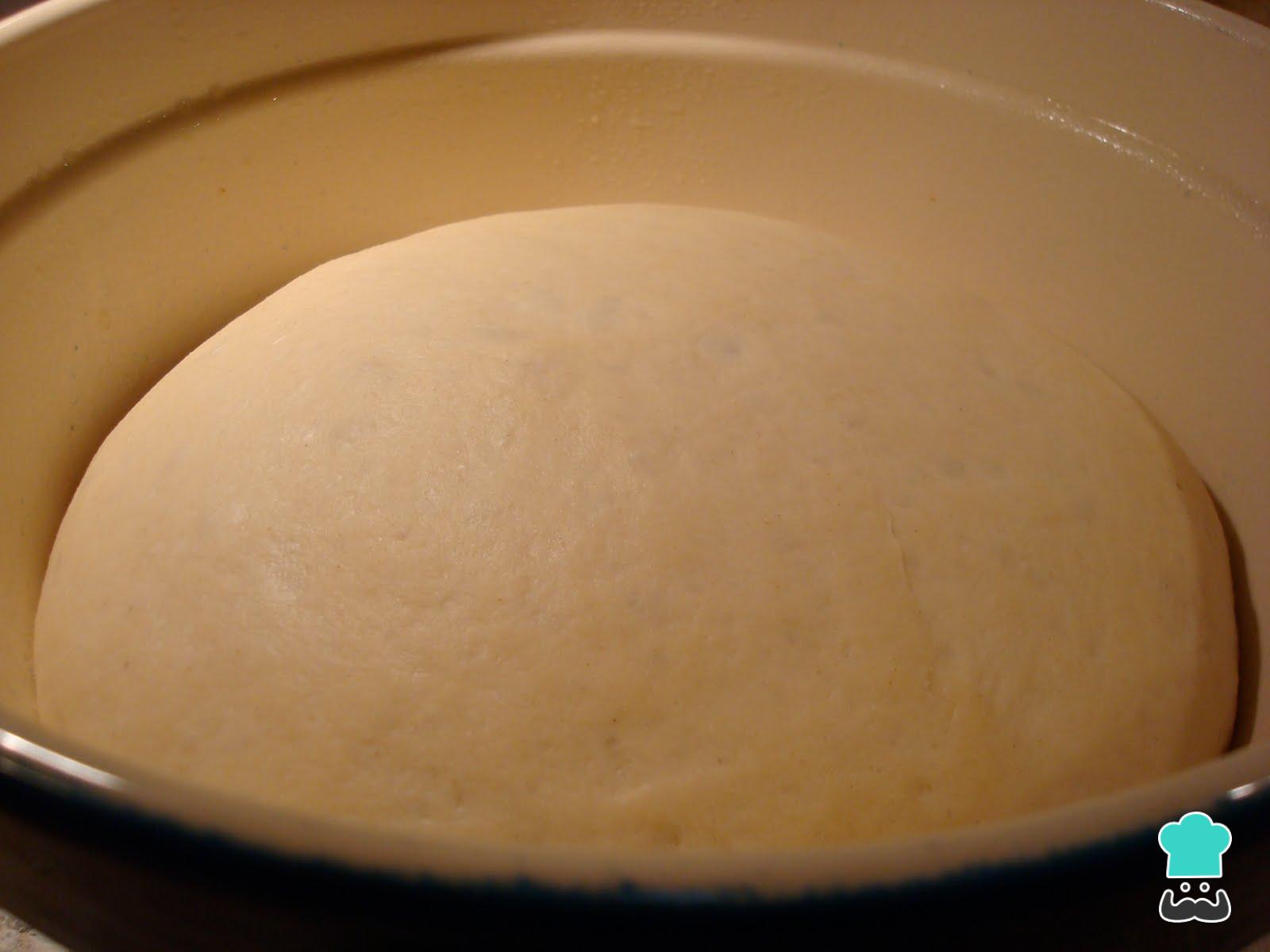 Misture com as pontas dos dedos e, quando ficar espessa, amasse até ficar homogênea e lisa. Cubra com um pano e deixe a massa de pizza crescer até dobrar de volume.