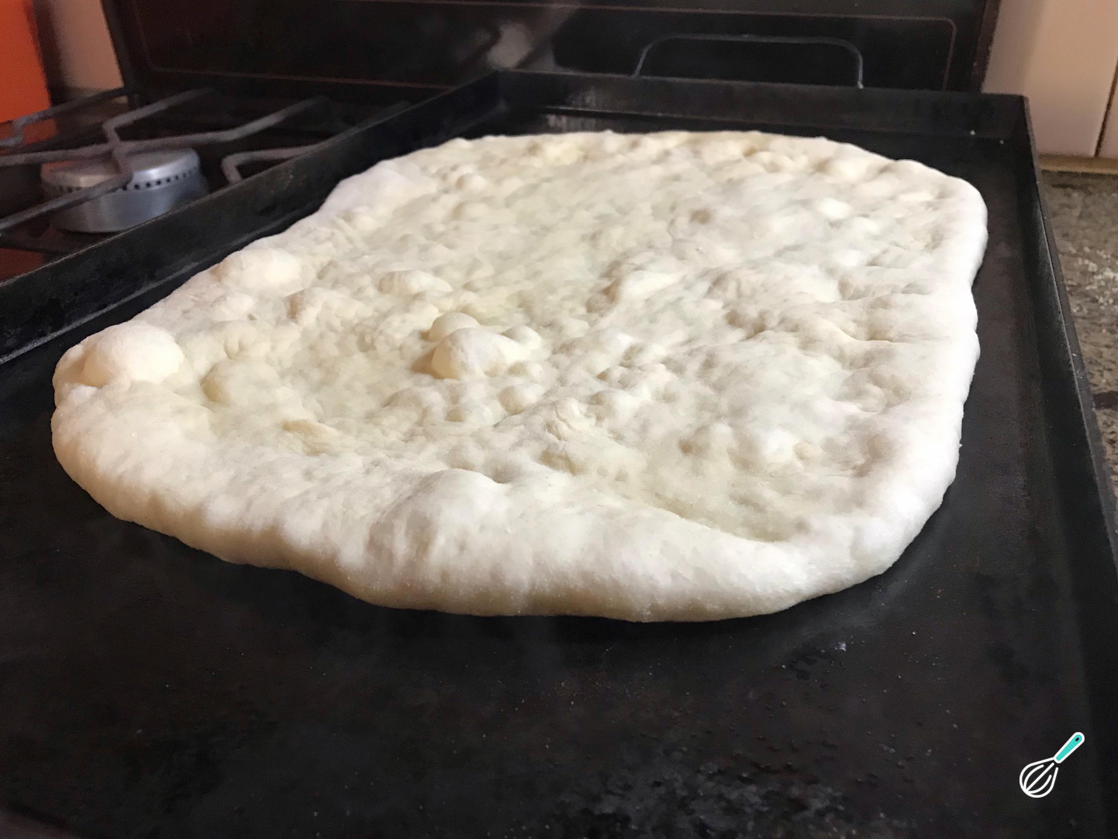 Dica: se quiser que cresça mais rápido, deixe a massa em um local quente, como em cima da geladeira ou perto de um forno aceso.