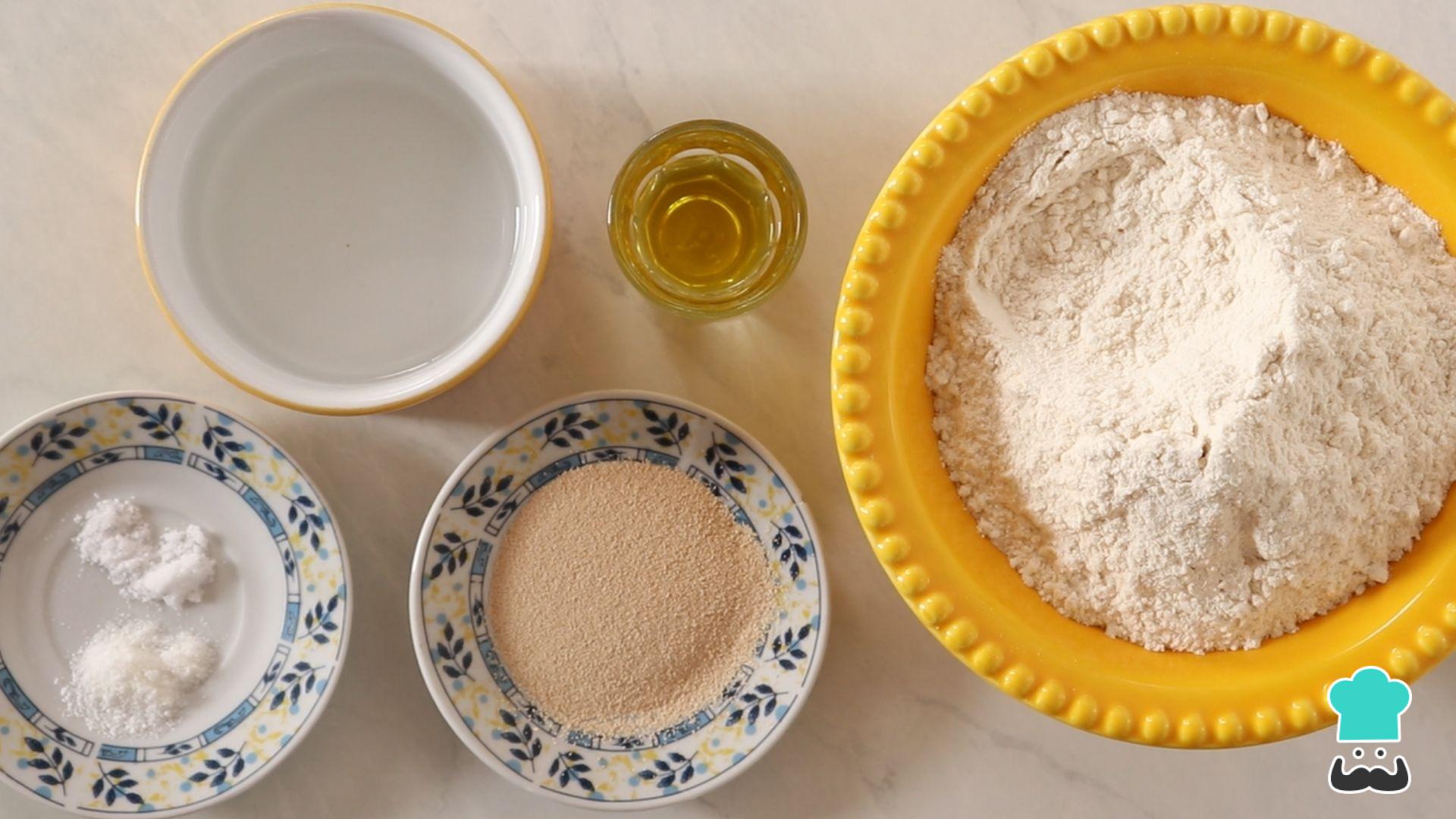 Vamos começar a te ensinar como fazer pizza no cone, preparando a massa, então separe os ingredientes.